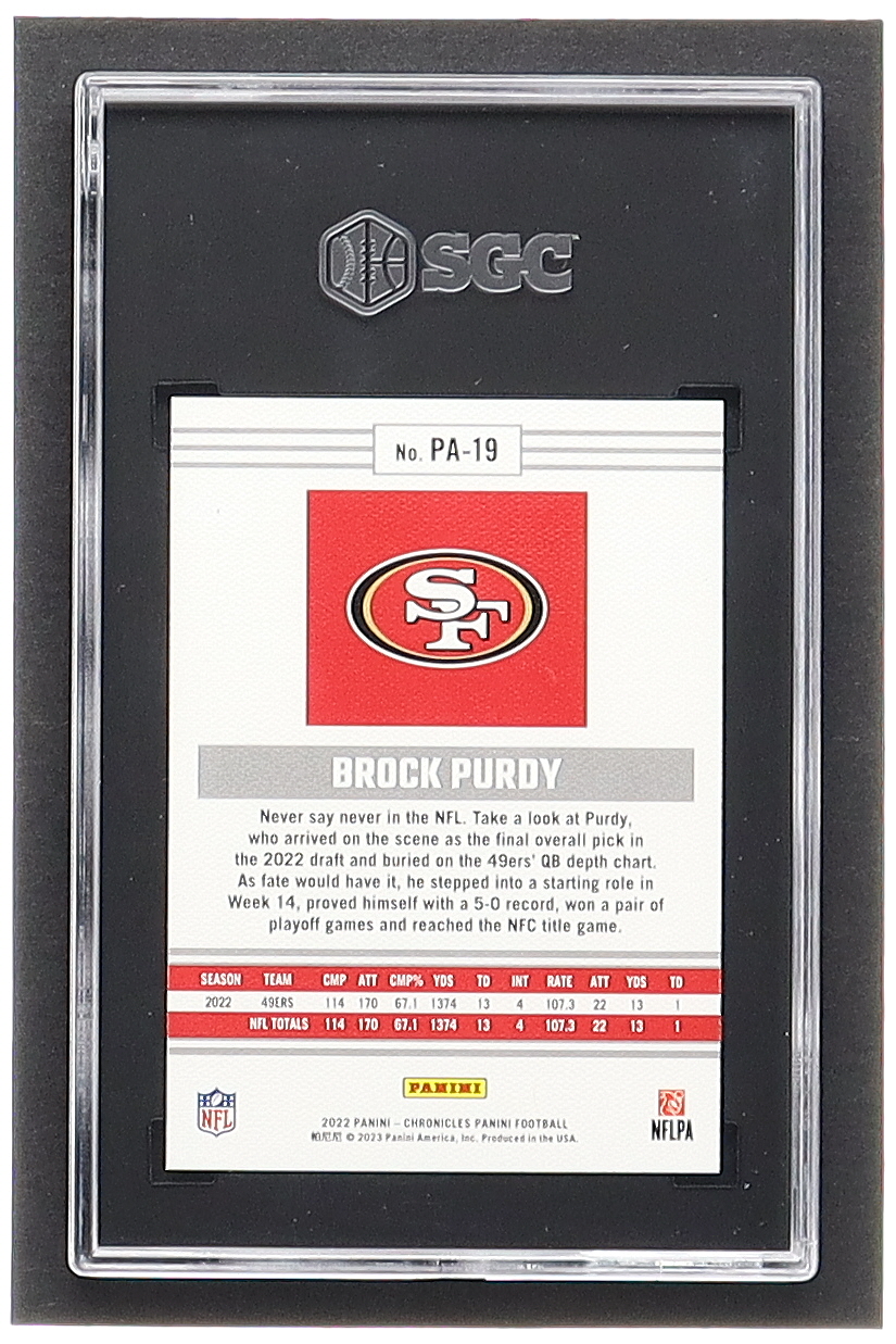 Brock Purdy 2022 Panini Chronicles Panini #19 RC (SGC 10)