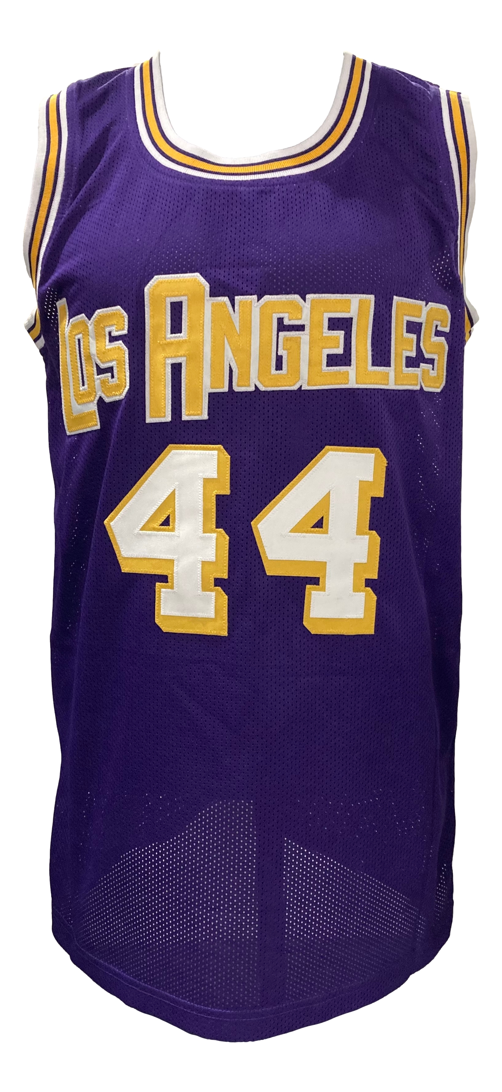 Jersey with everything sewn on, size XL. Hand-signed by Jerry West (HOF).