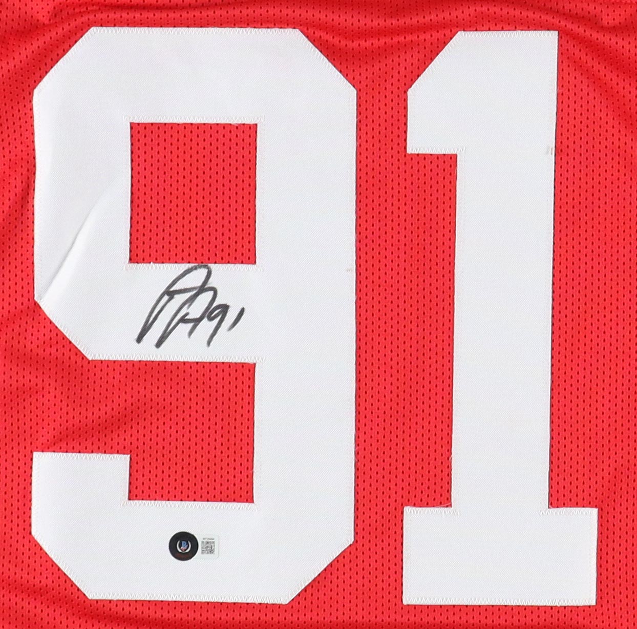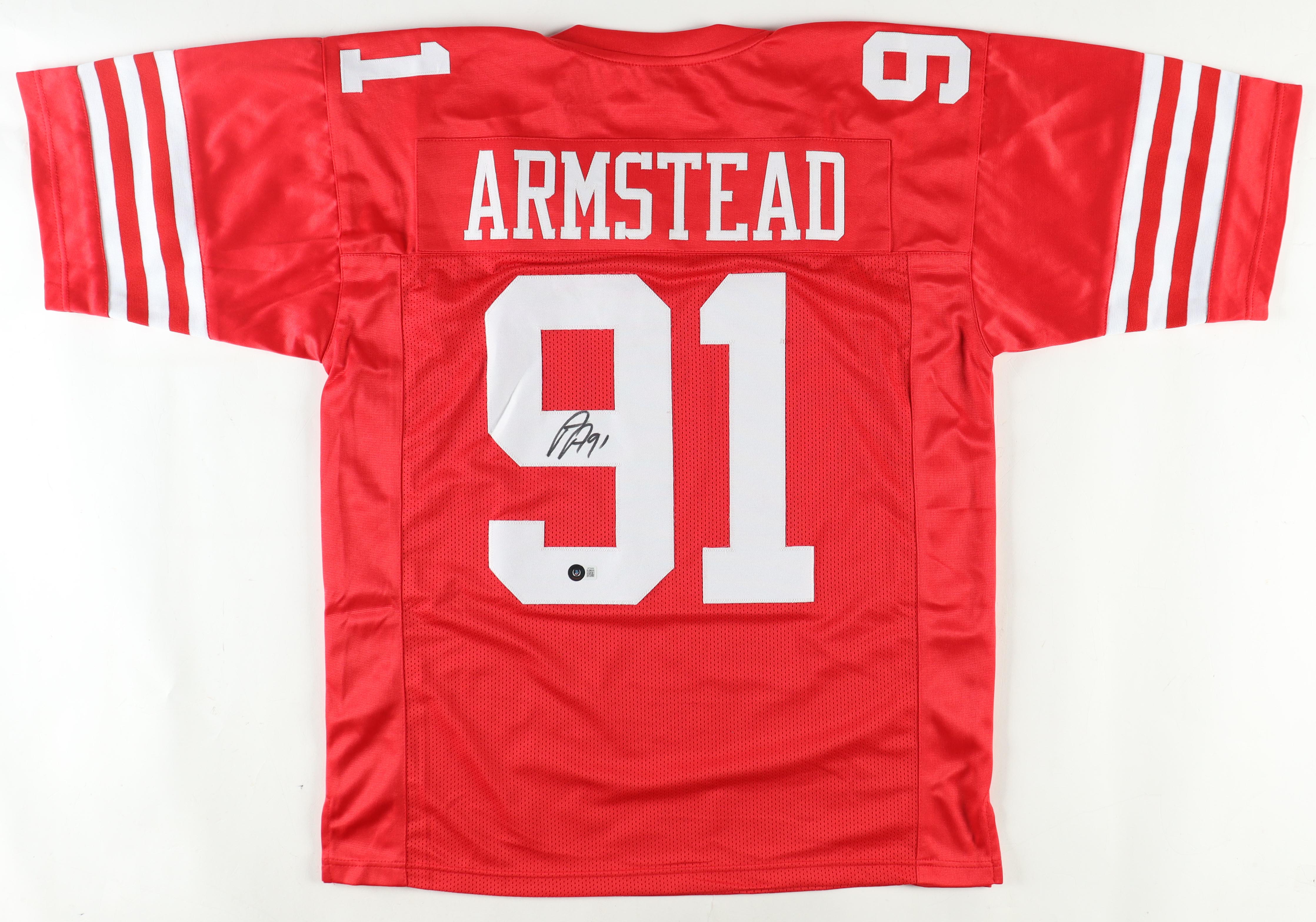 Custom jersey. Everything is sewn on, size XL. Hand-signed by Arik Armstead.