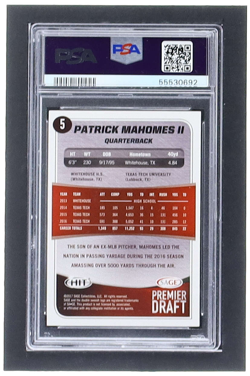 Patrick Mahomes II 2017 SAGE HIT Premier Draft #5 RC (PSA 9)