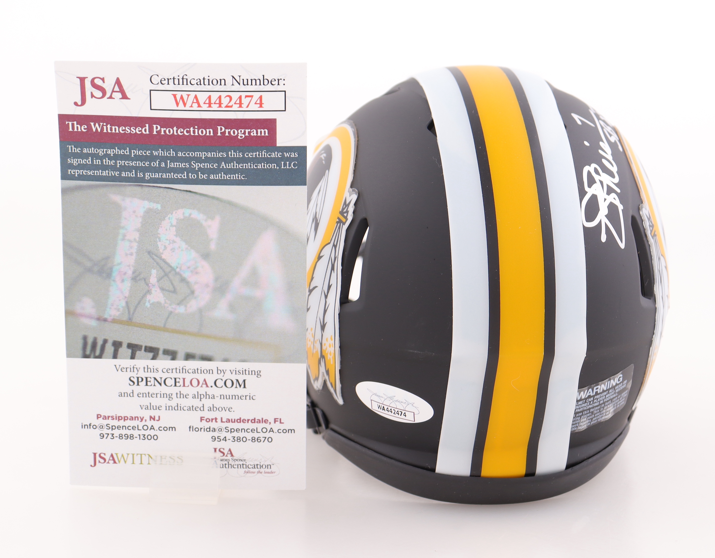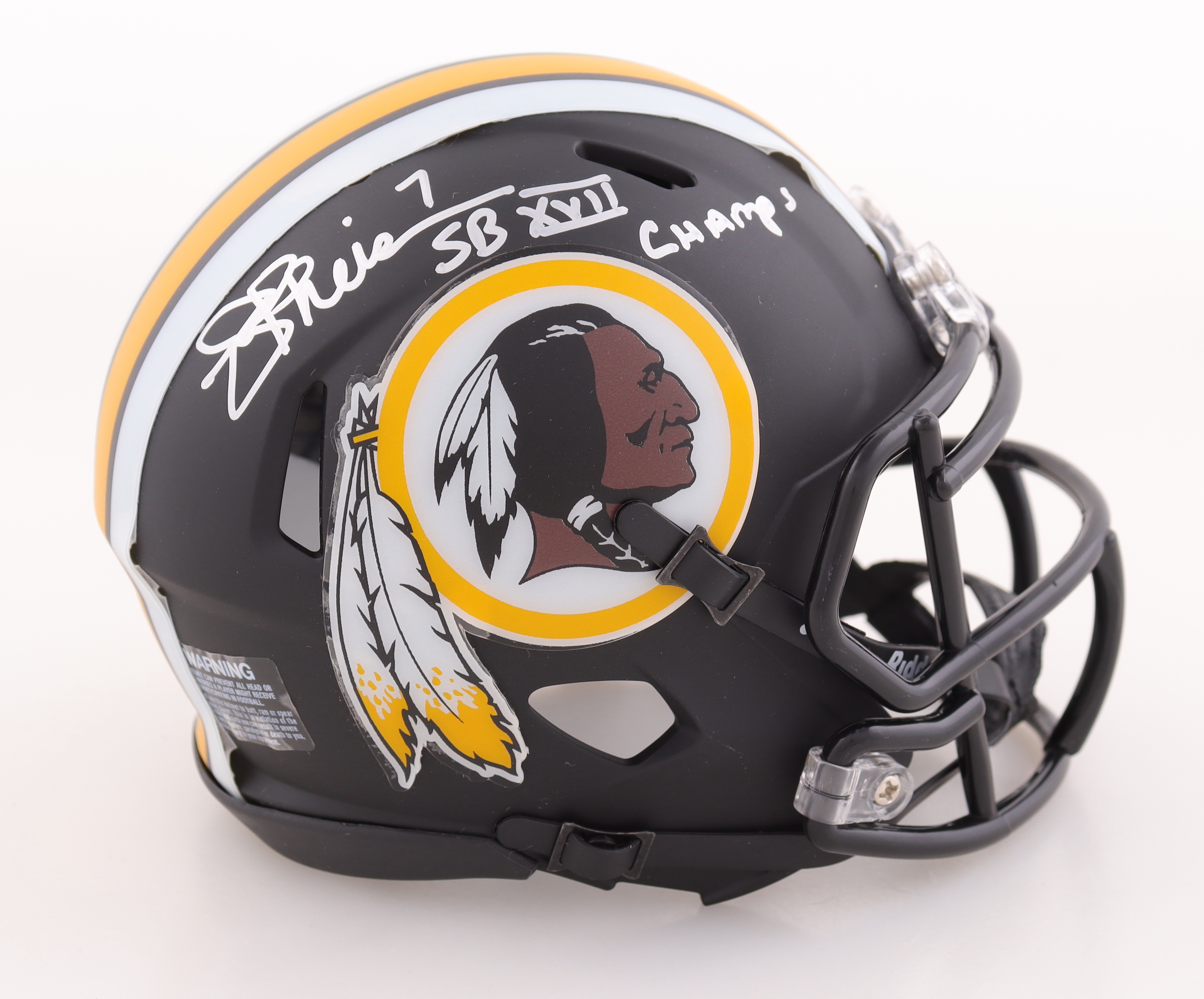 Riddell Washington Redskins Eclipse Alternate Speed mini helmet. Hand-signed and inscribed by Joe Theismann.
