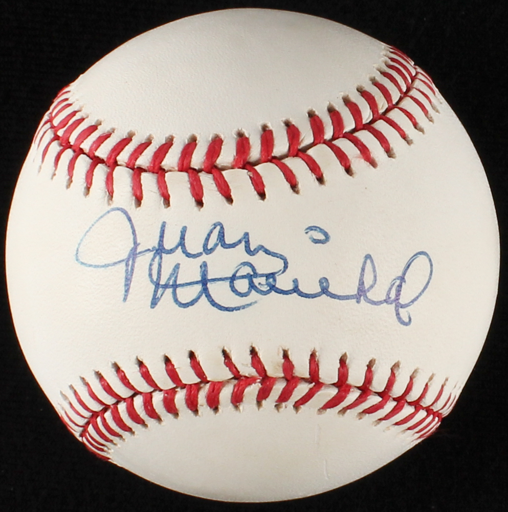 Rawlings Official National League Baseball. Hand-signed in blue ink pen by Juan Marichal (Giants, Red Sox, HOF). Please note, autograph shows slight imperfections, see photos for details.