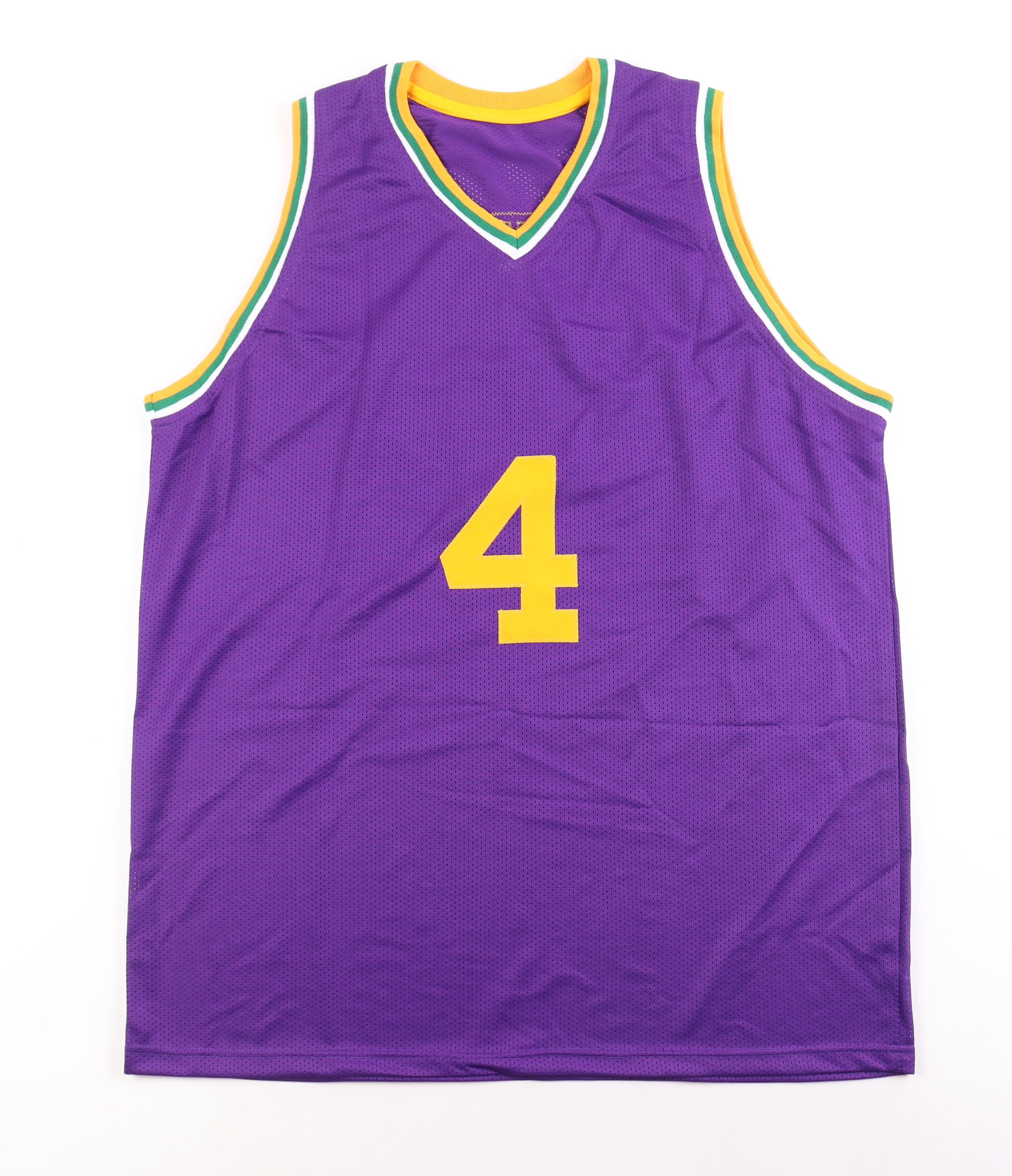 Custom style jersey with everything sewn on, size XL. Hand-signed and inscribed by Adrian Dantley (HOF).