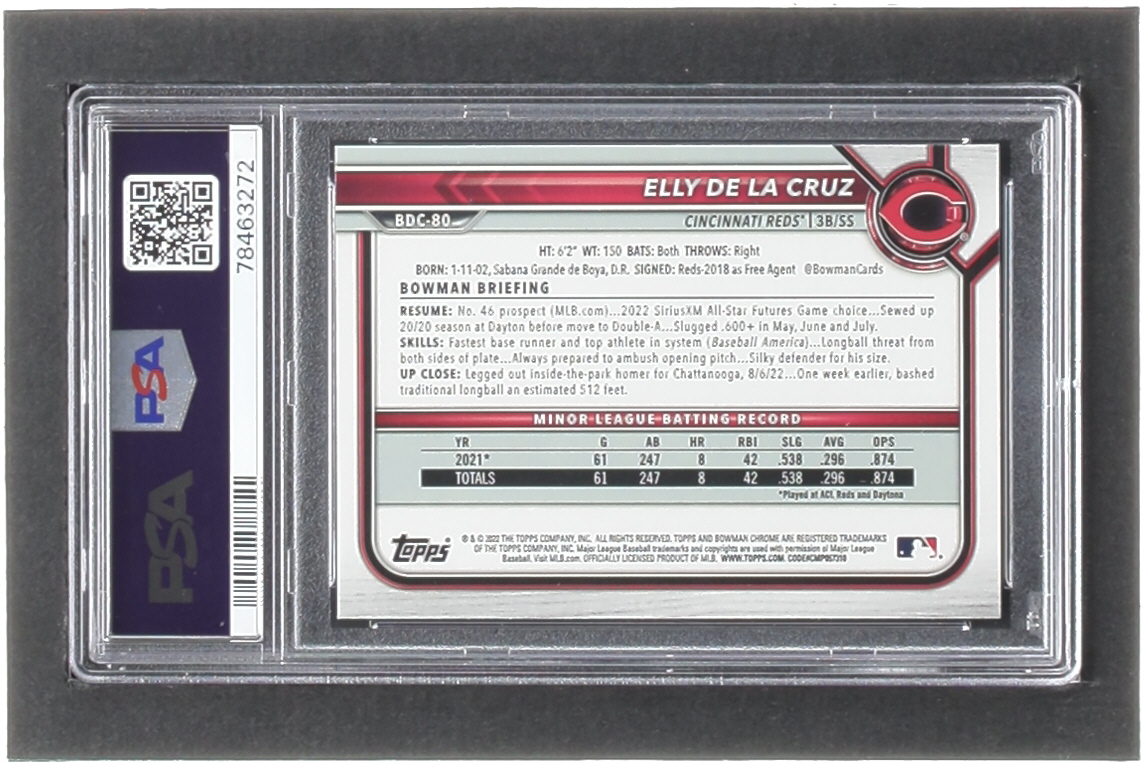 Elly De La Cruz 2022 Bowman Chrome Draft Sky Blue Refractors #BDC80 RC (PSA 10)
