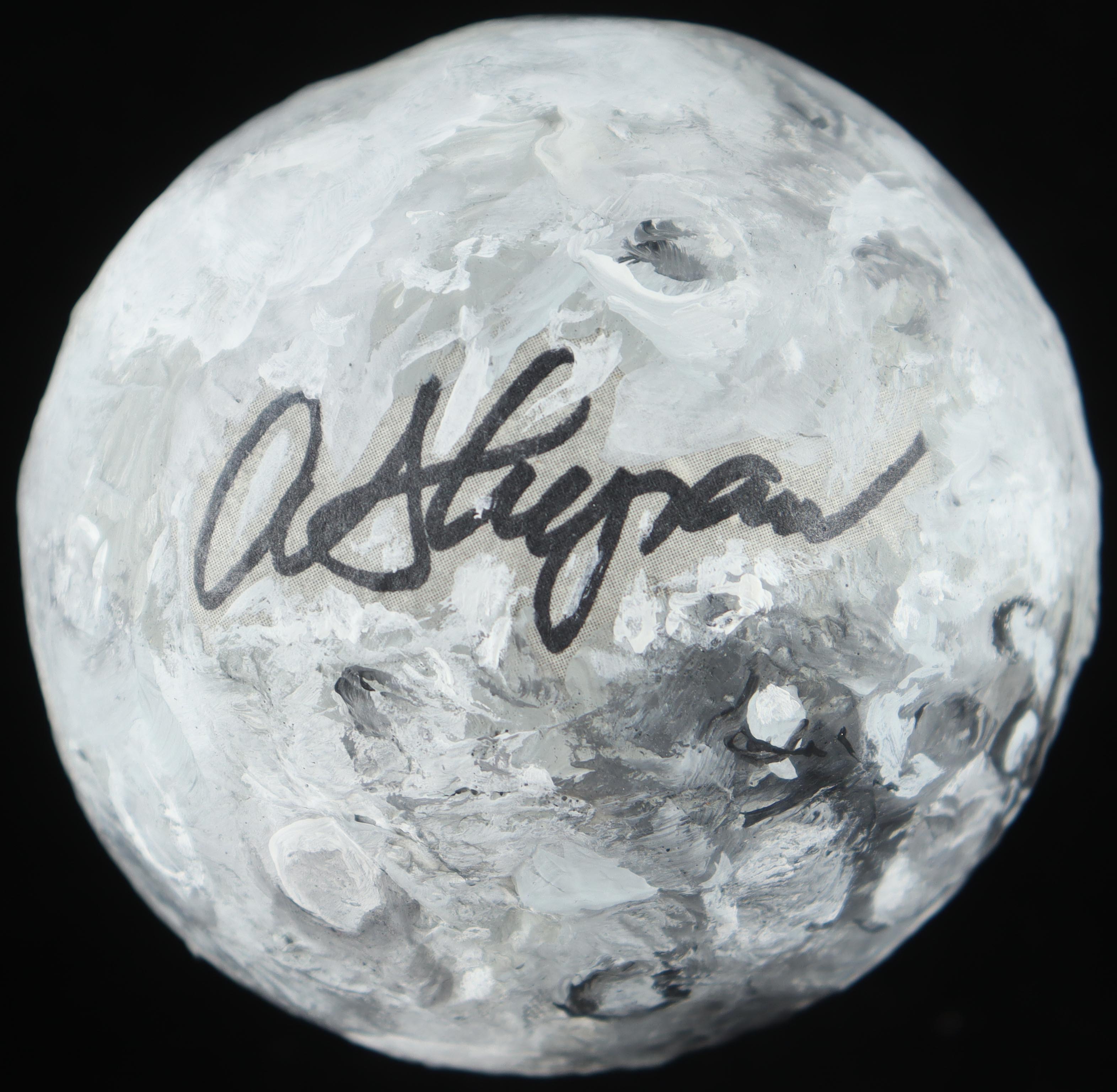 Replica moon rock has been hand-signed by Alan Shepard (D. 1998). Includes display case as shown.