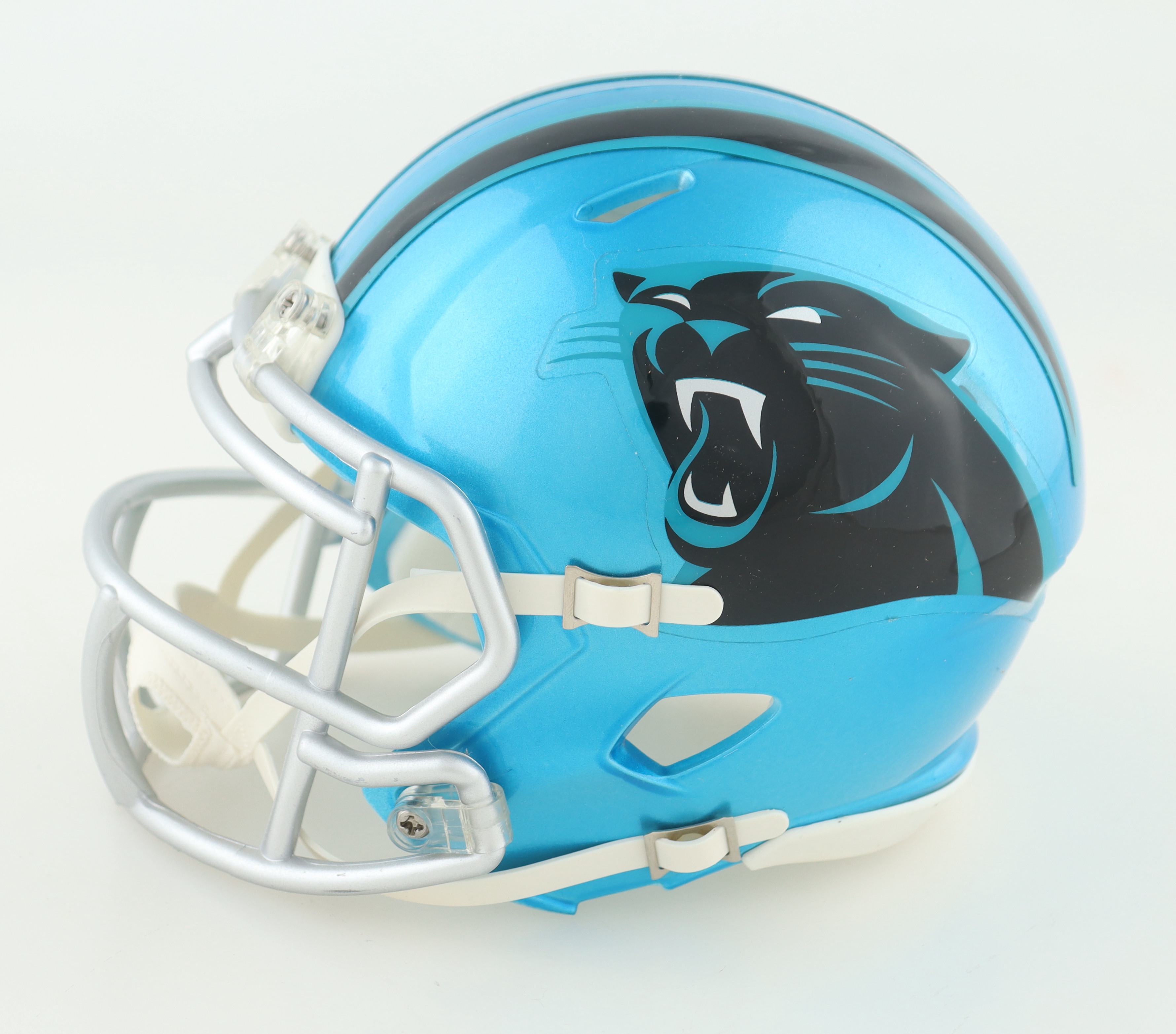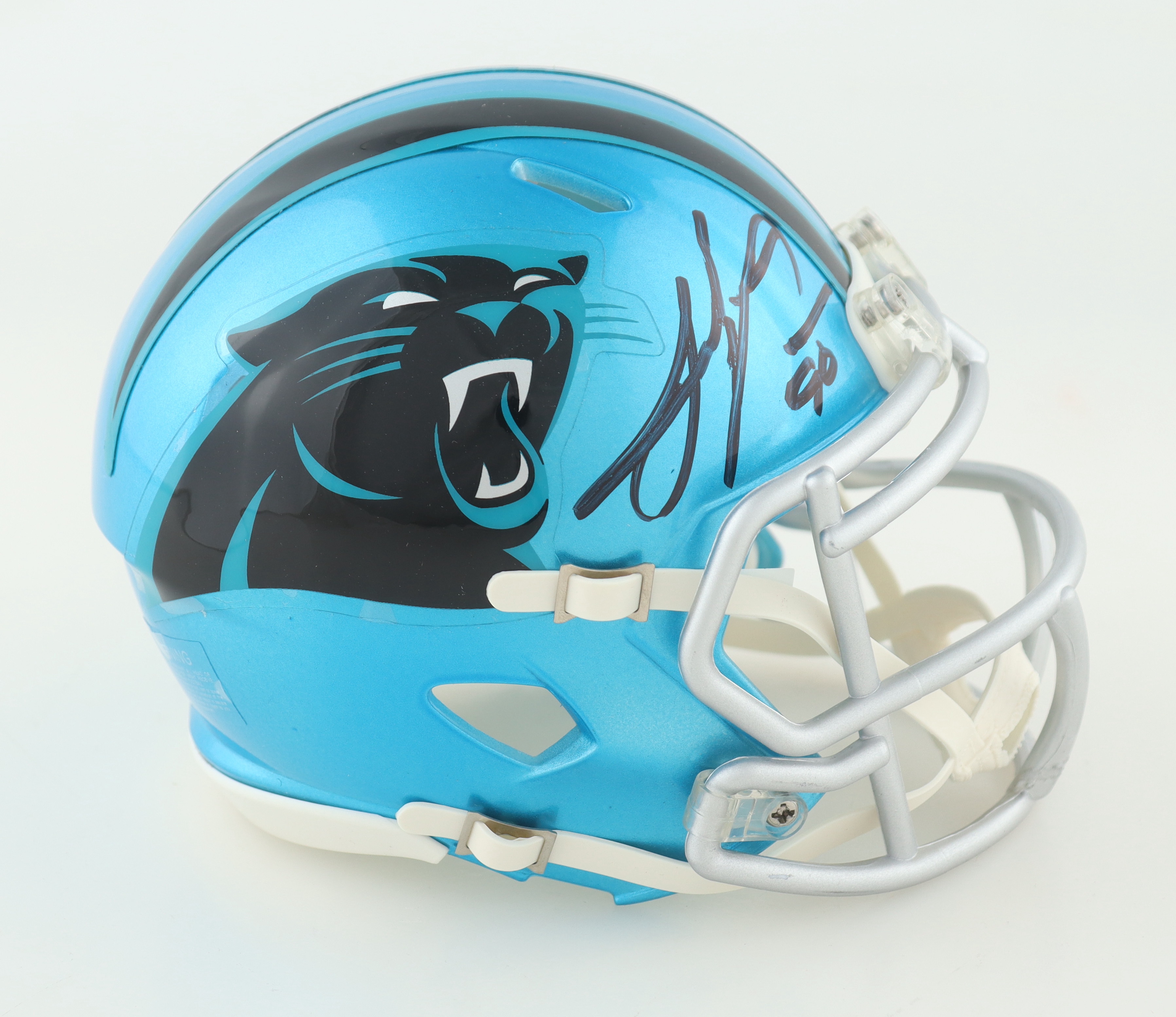 Riddell Carolina Panthers Flash Alternate Speed mini helmet. Hand-signed by Julius Peppers.