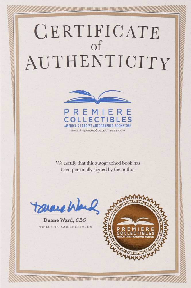 The book includes an official Premier Collectibles COA for authenticity purposes.
