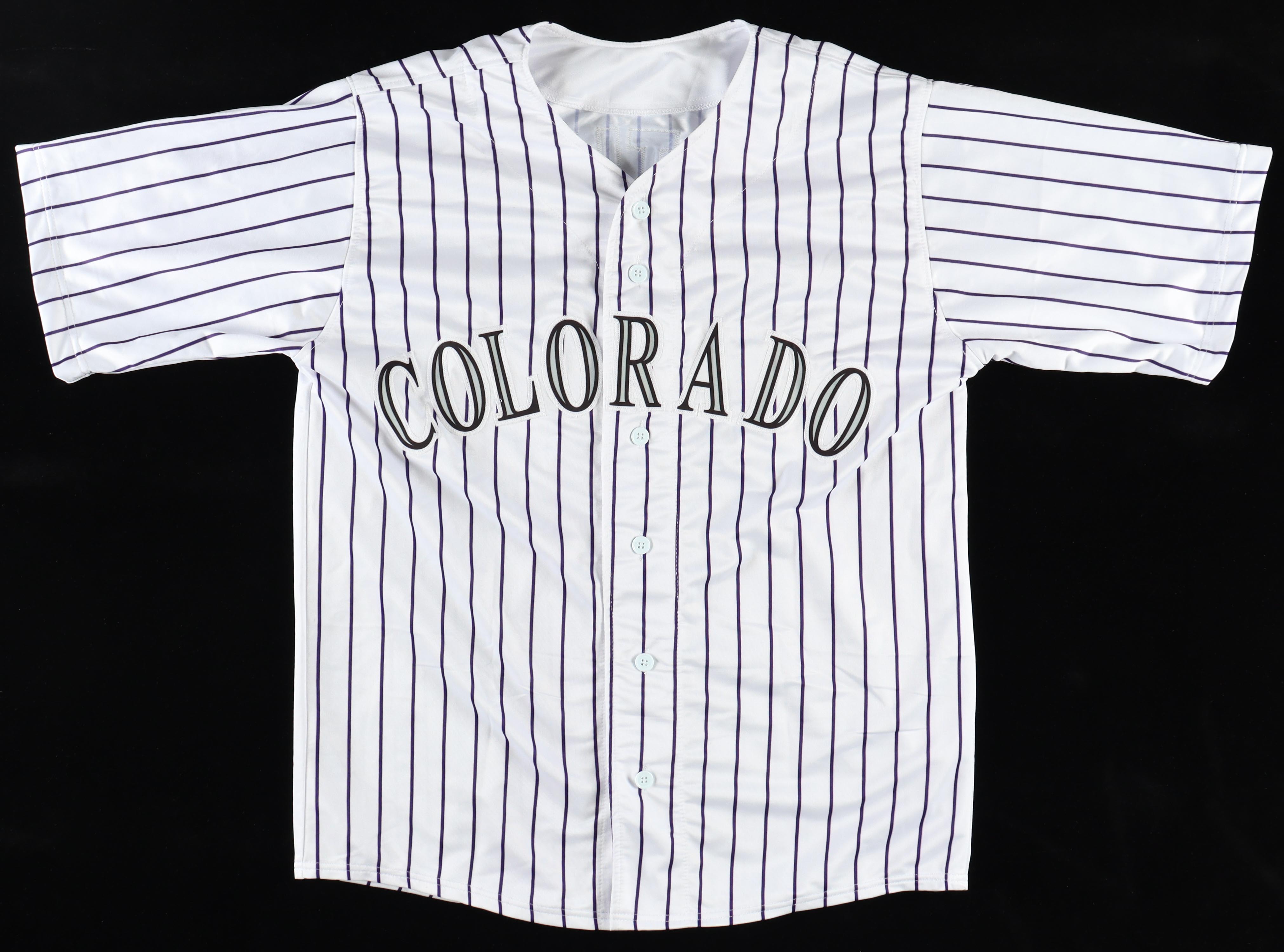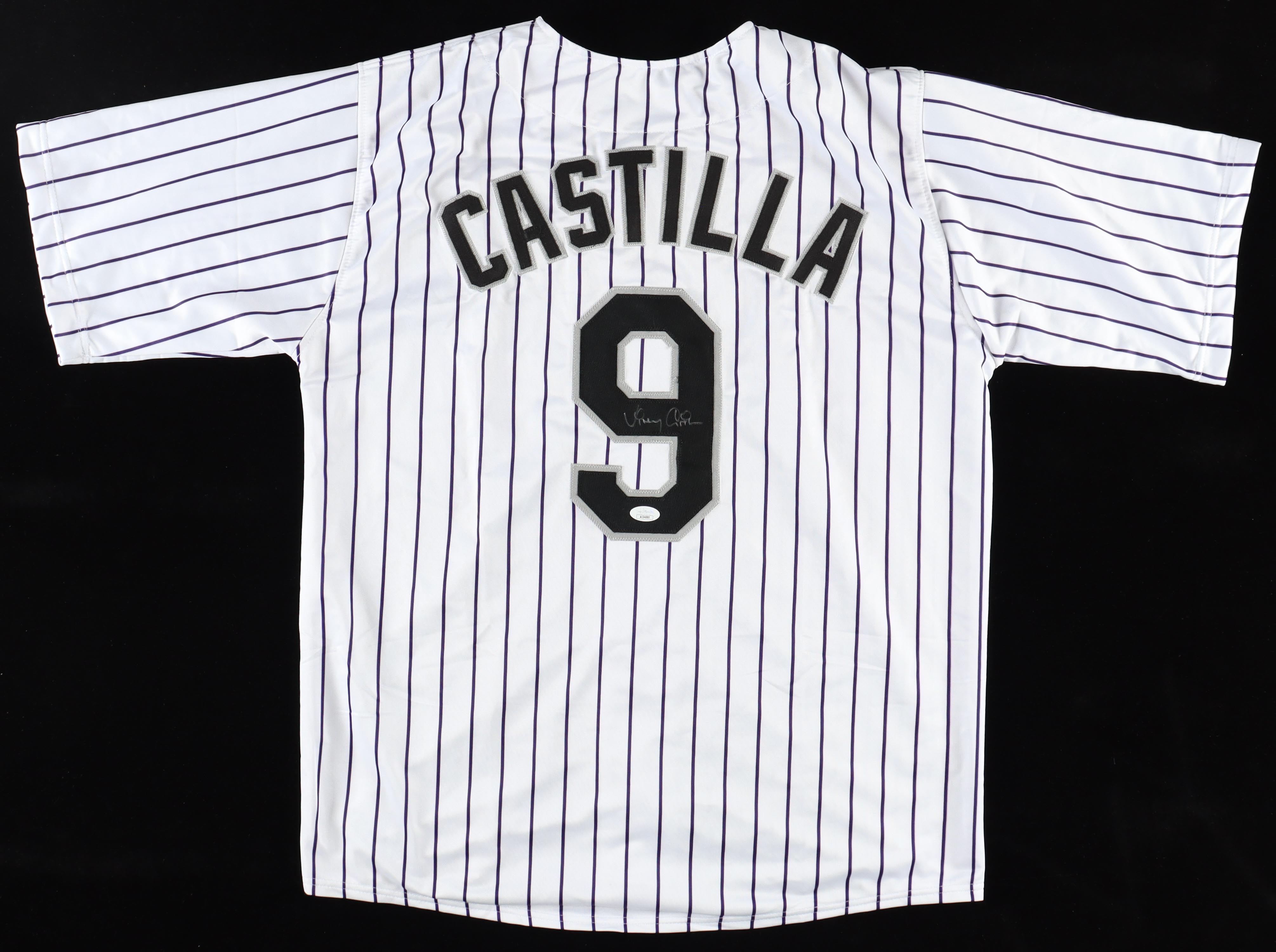 Custom jersey with everything sewn on, size XL. Hand-signed by Vinny Castilla (Colorado Rockies).