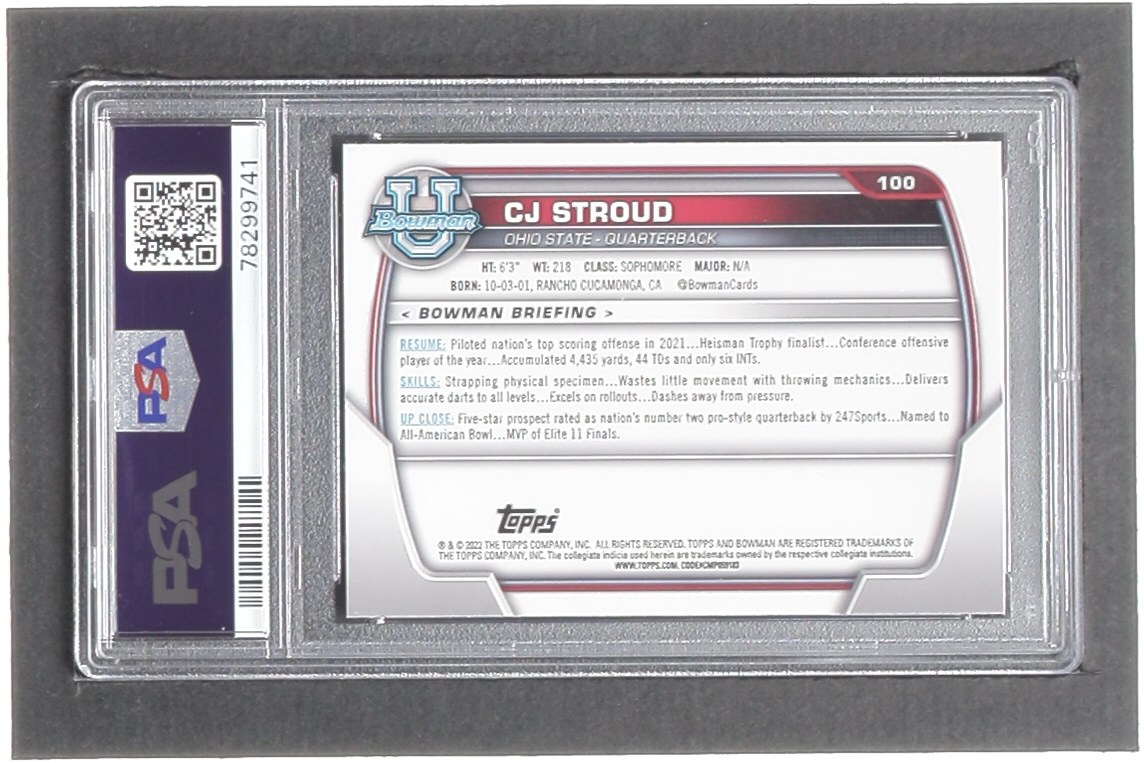 CJ Stroud 2022 Bowman Chrome University #100 RC (PSA 10)