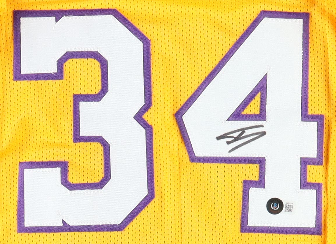 Custom jersey. Everything is sewn on, size XL. Hand-signed by Shaquille O'Neal (HOF). O'Neal's career stats have been custom stitched in the jersey below the reverse numbers