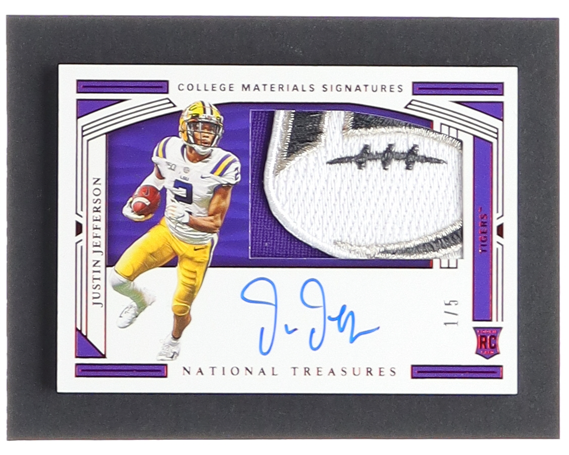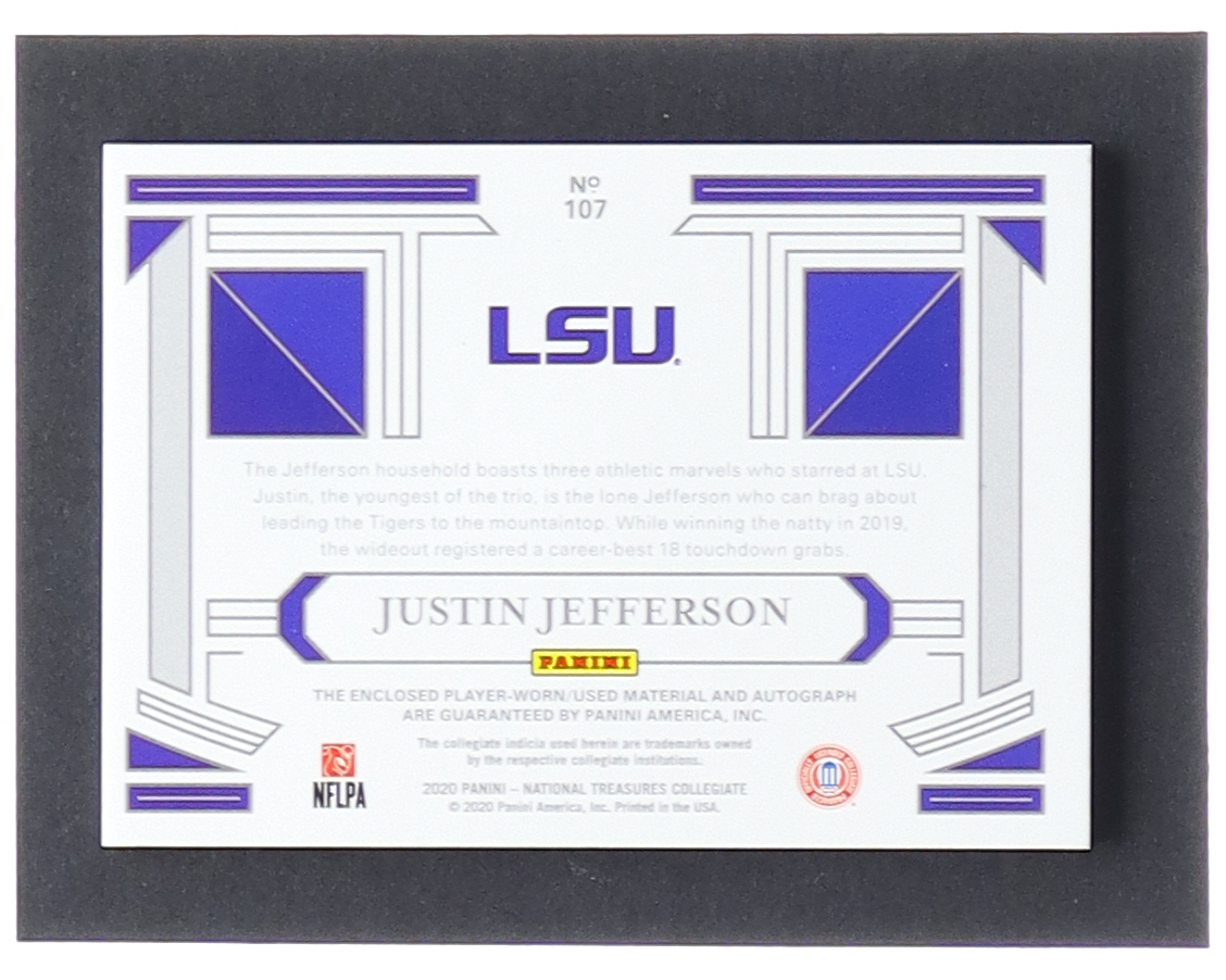 Justin Jefferson 2020 Panini National Treasures Collegiate College Material Signatures 150th Anniversary Logo #107 RC #1/5