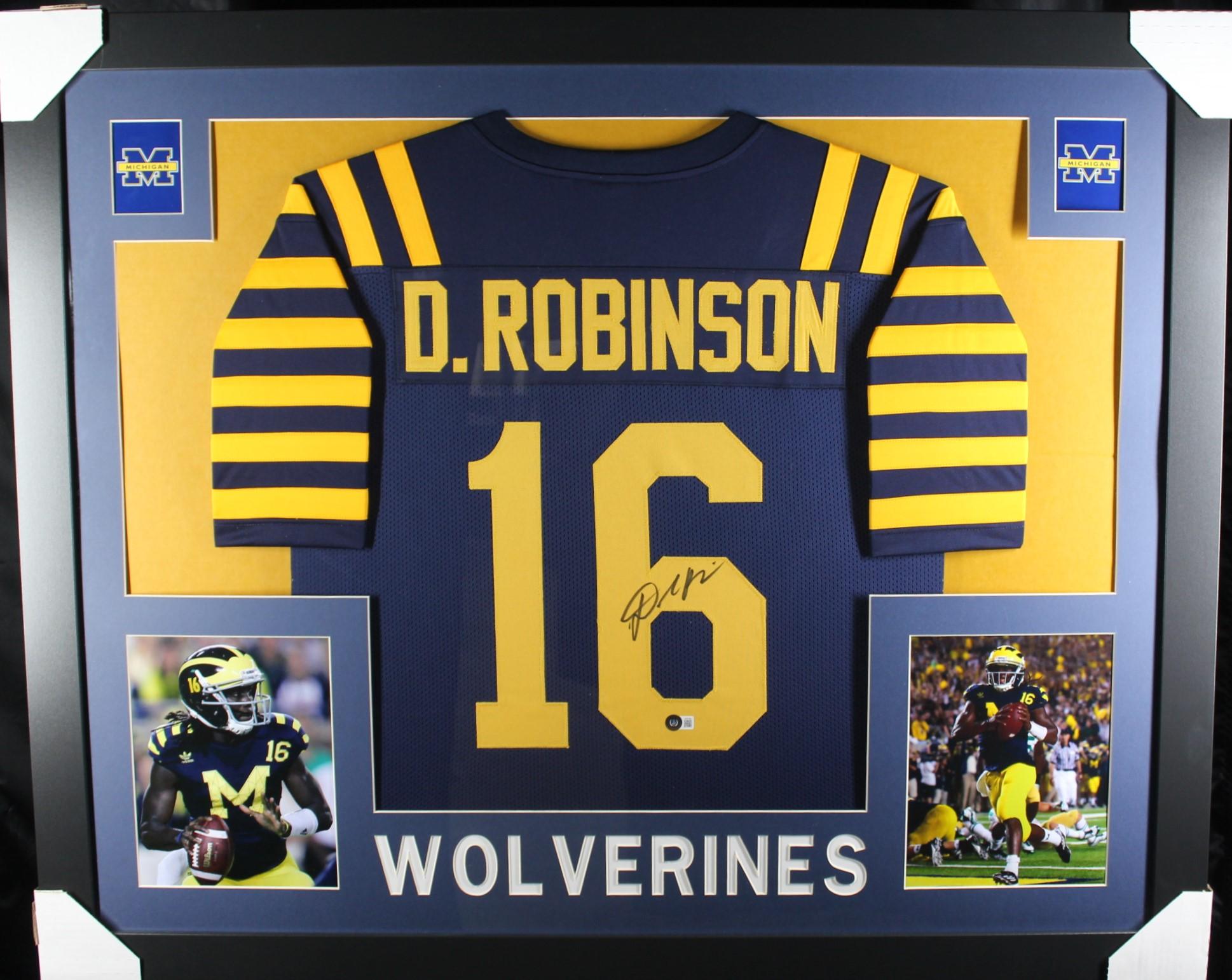 Custom frame measures approximately 35" x 43" in size and features a jersey that has been hand-signed by Denard Robinson.
