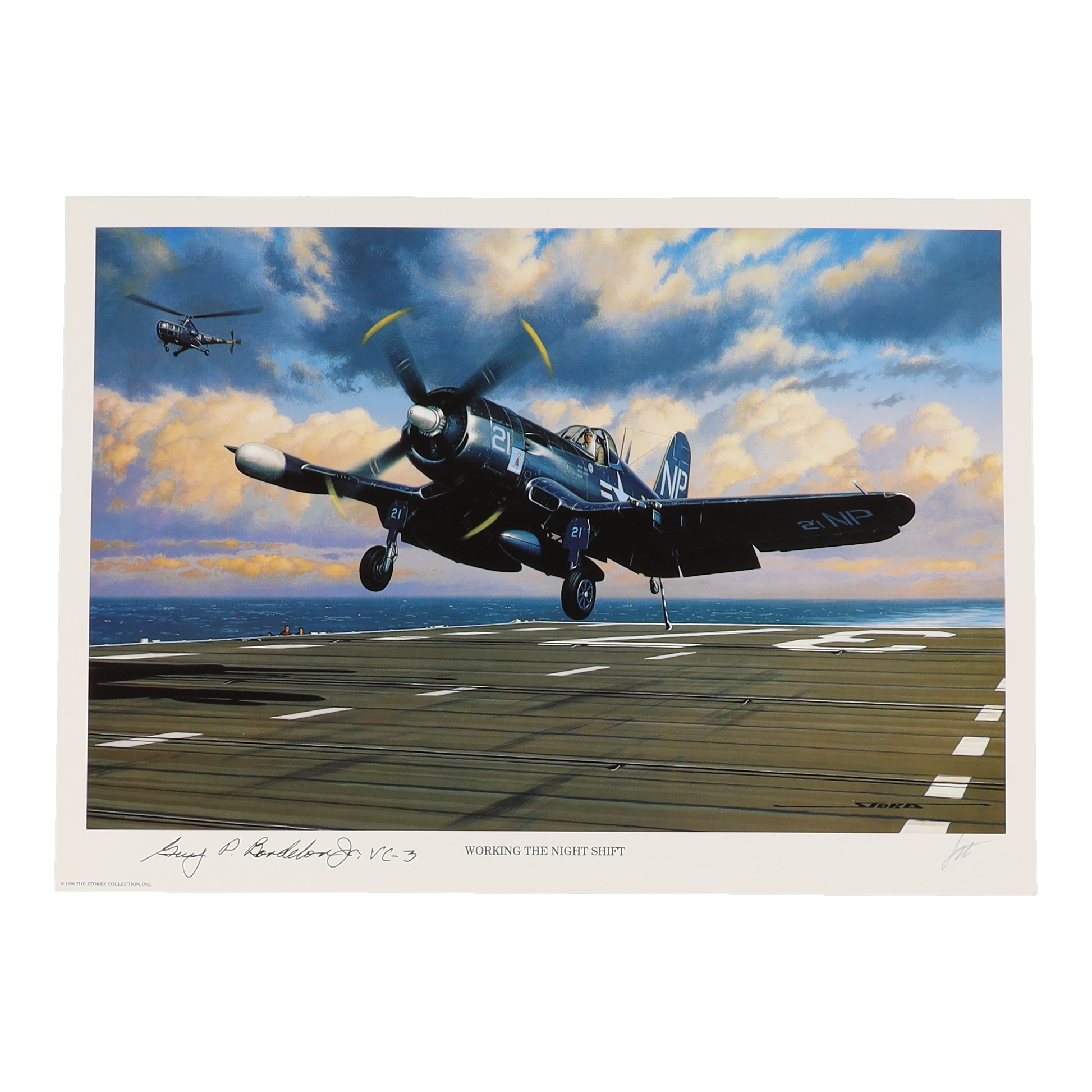 Guy Bordelon & Stan Stokes Signed "Working The Night Shift" 11.5x16 Print Inscribed "VC-3" (AIV)