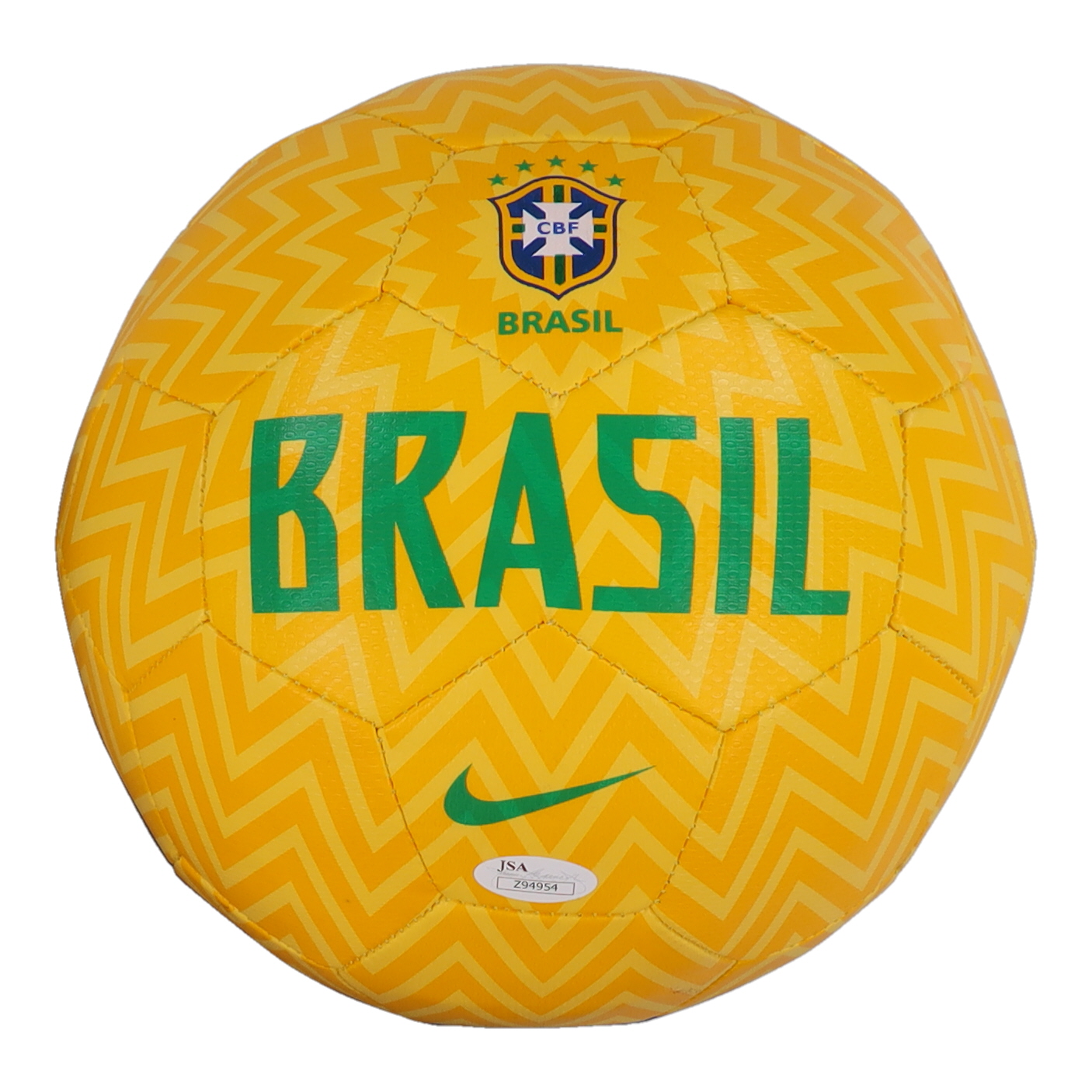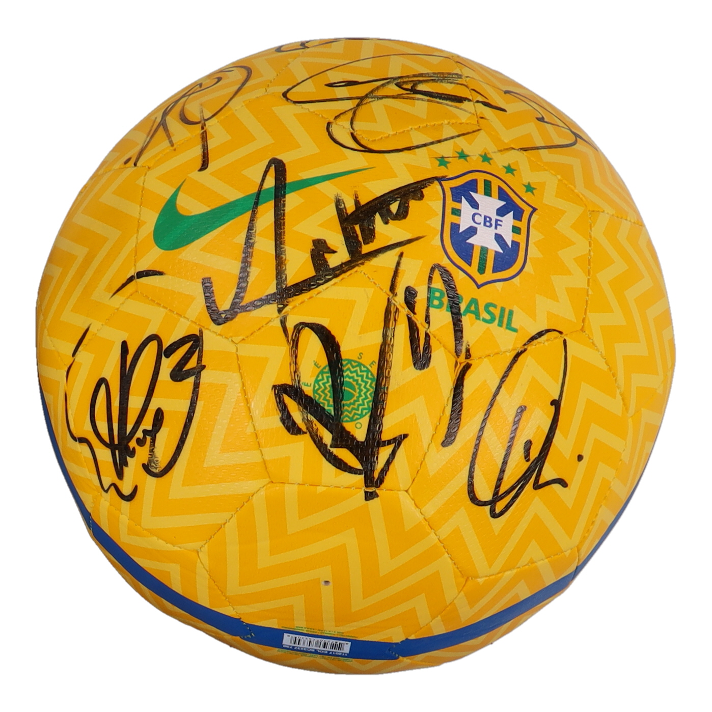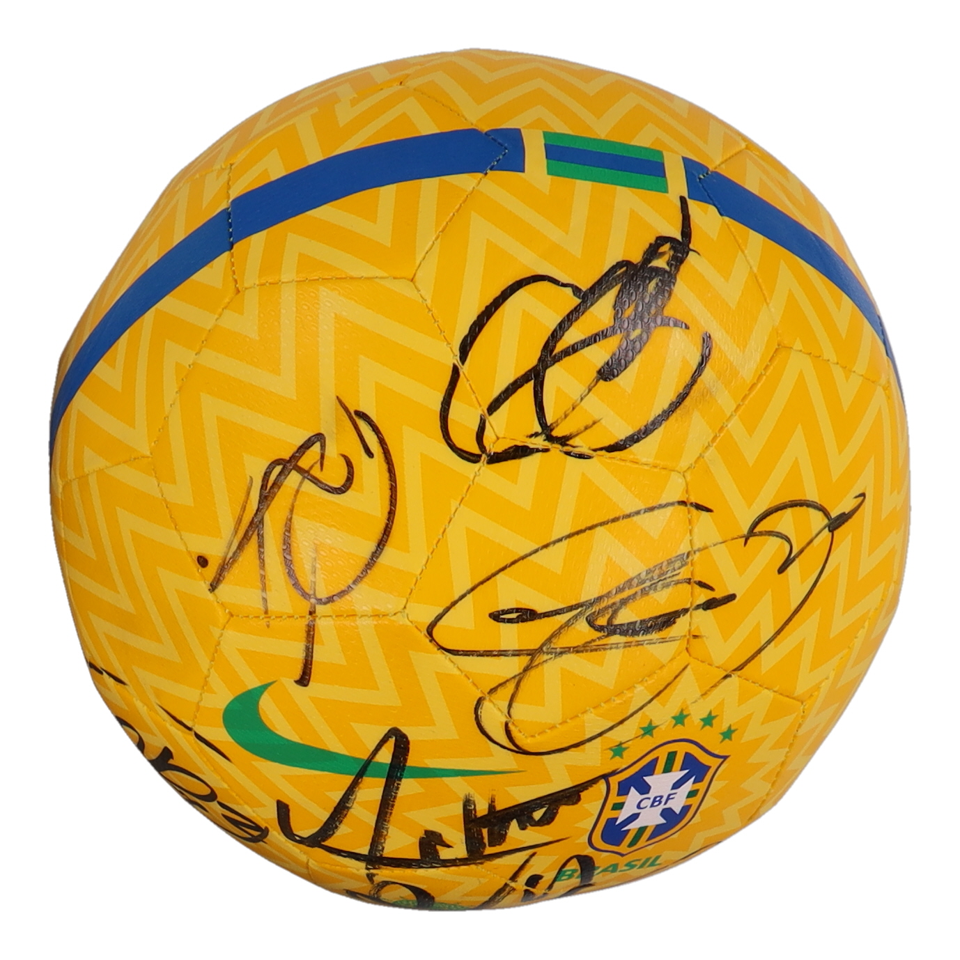 Nike Brazilian National Team Logo Soccer ball. Hand-signed by Neymar Jr., Thiago Silva, Arthur Melo, Richarlison, Roberto Firmino, Phillipe Coutinho, Vinicius Junior (CBF Brazil).