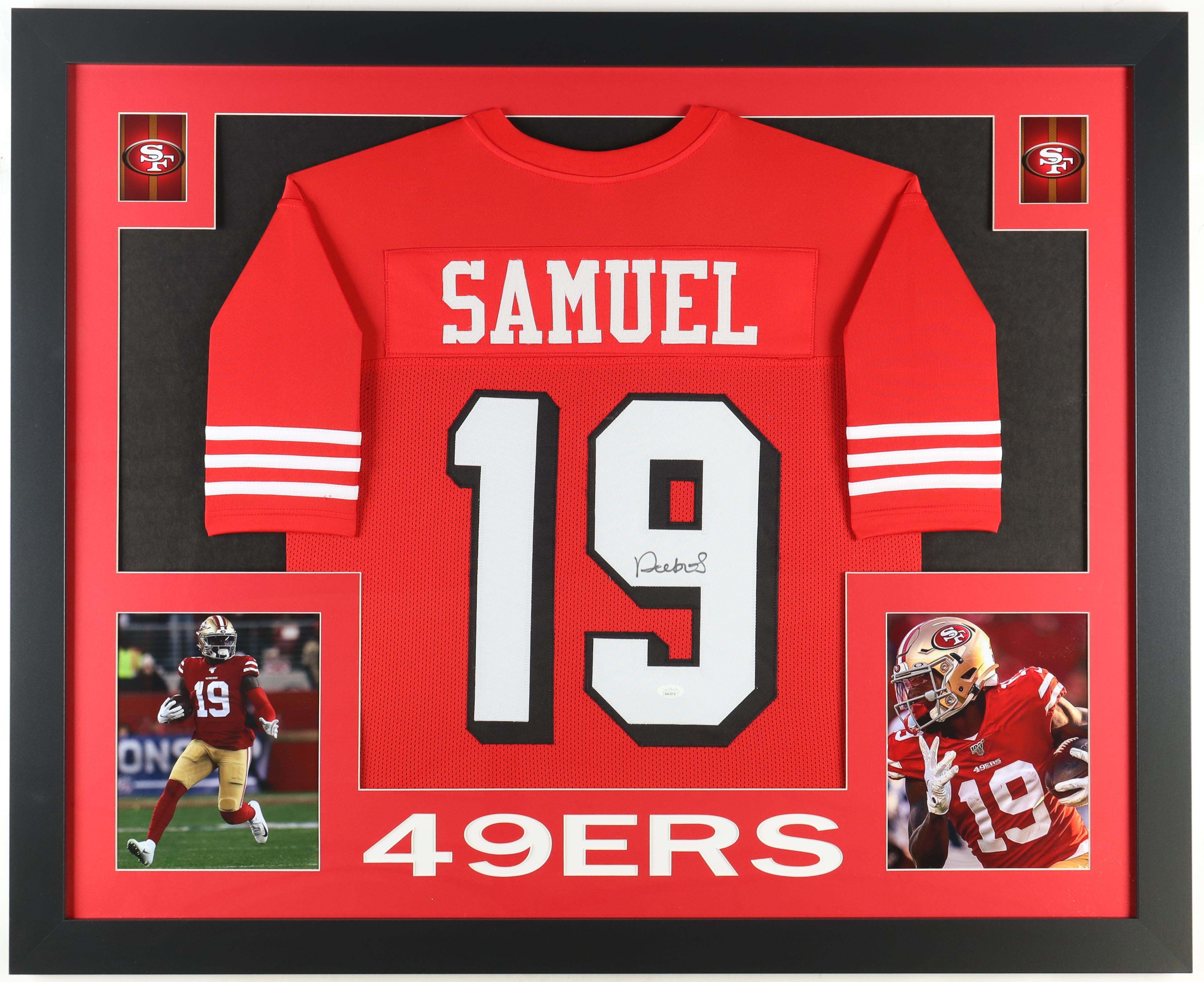 Custom frame measures 35" x 43" in size and features a jersey hand-signed by Deebo Samuel.