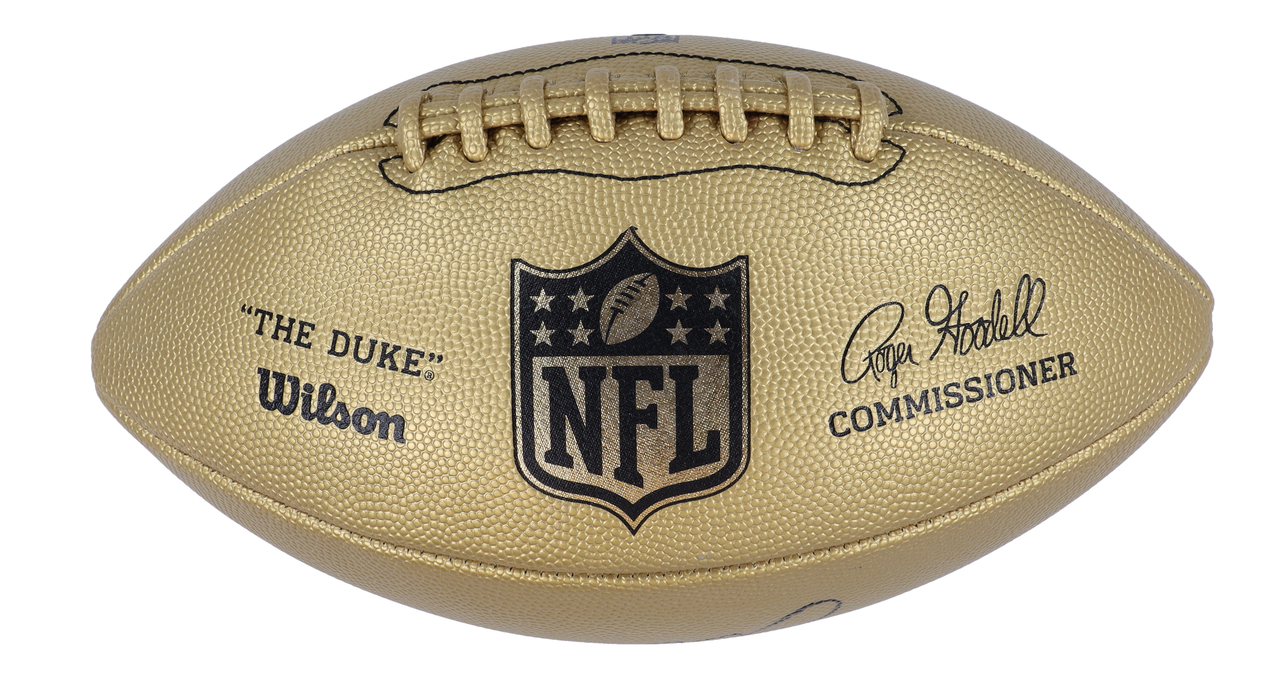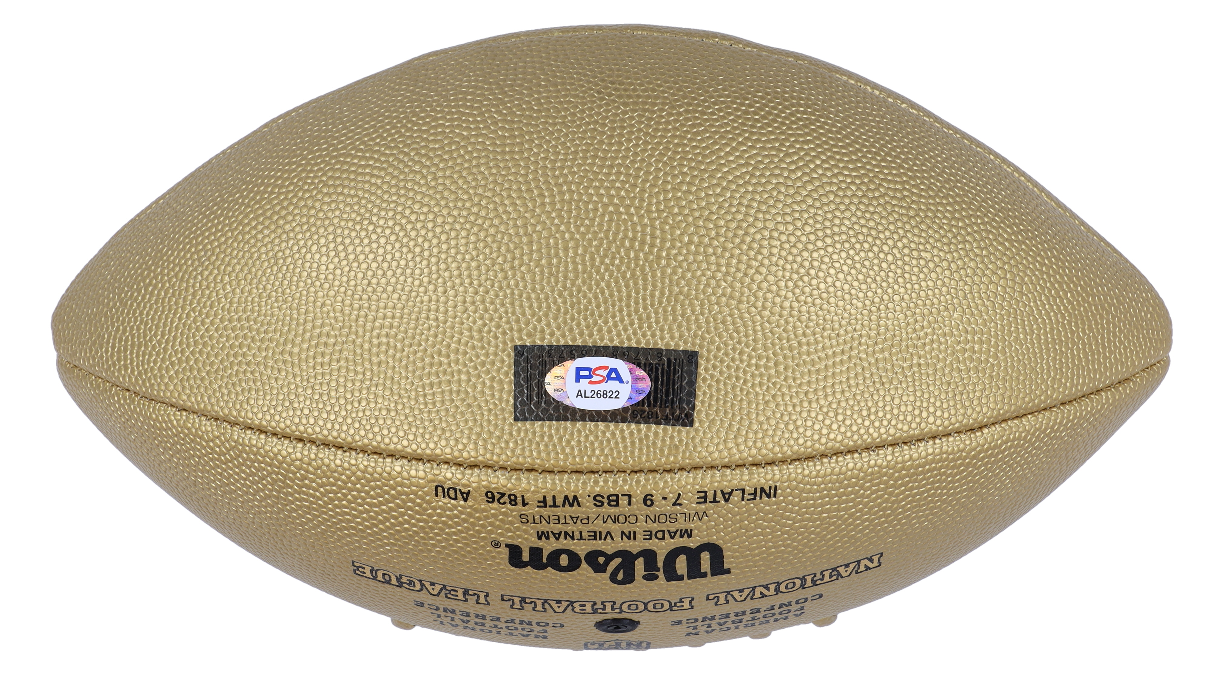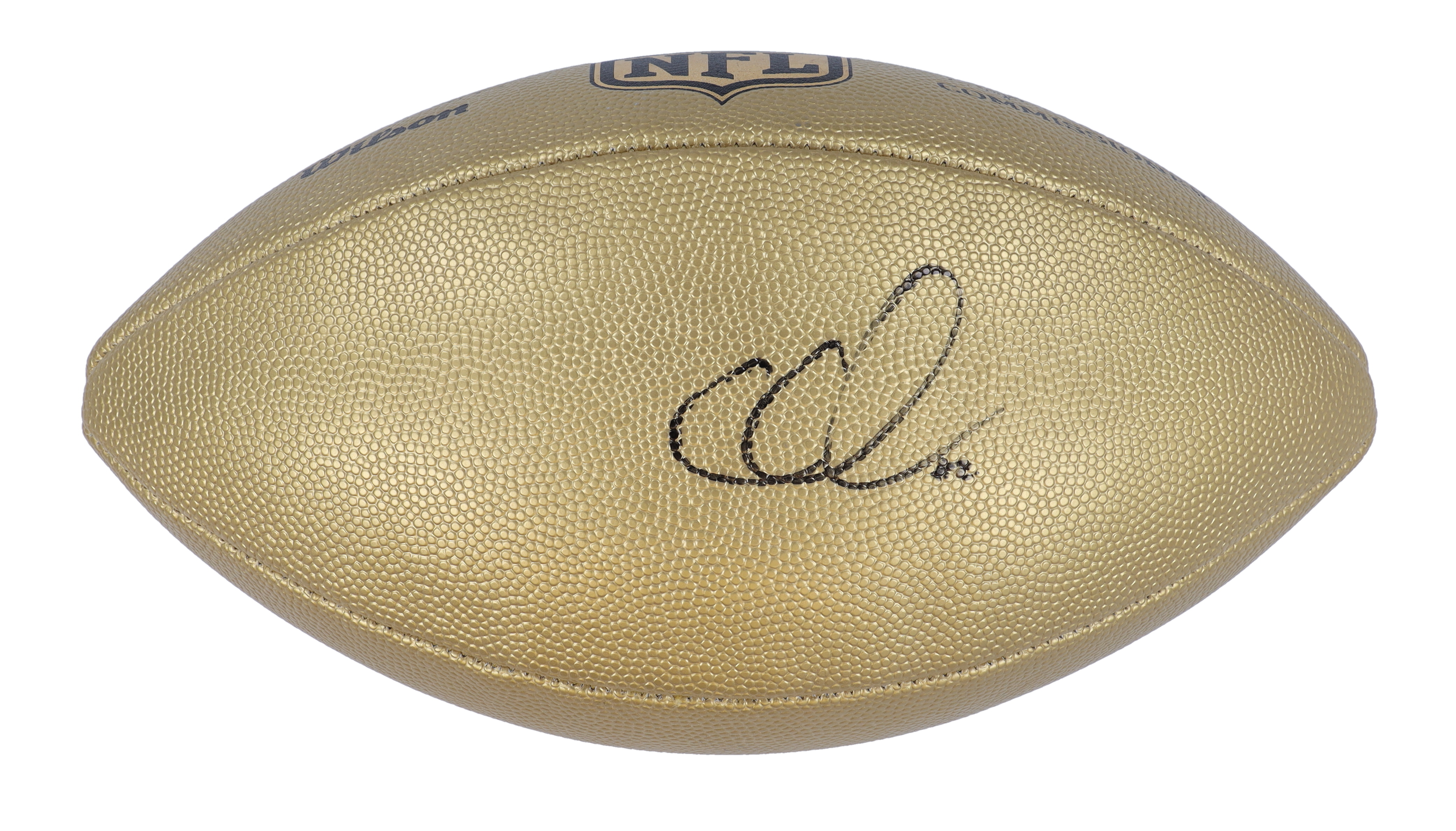 Wilson "The Duke" gold Official NFL game football. Hand-signed by Chris Olave (New Orleans Saints).