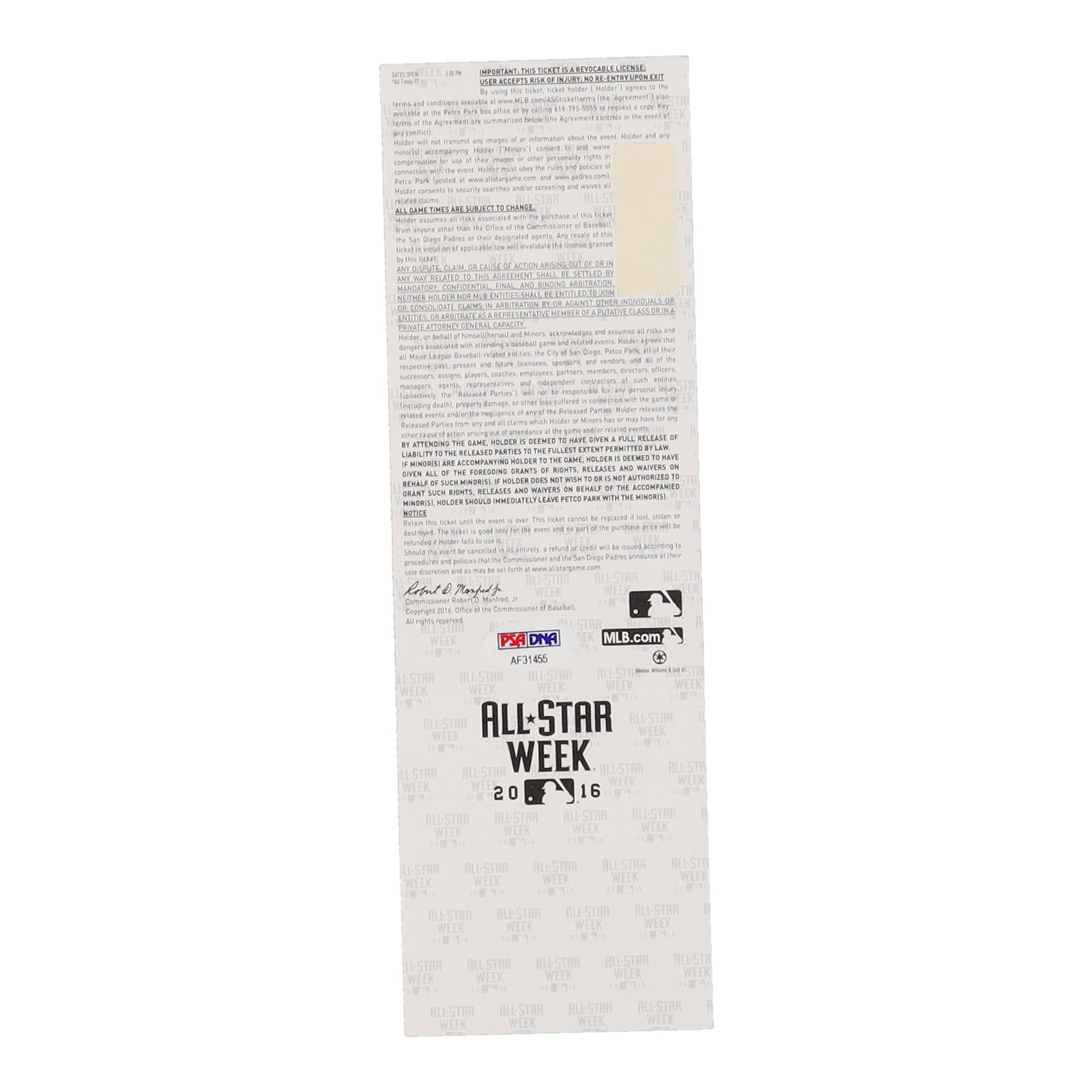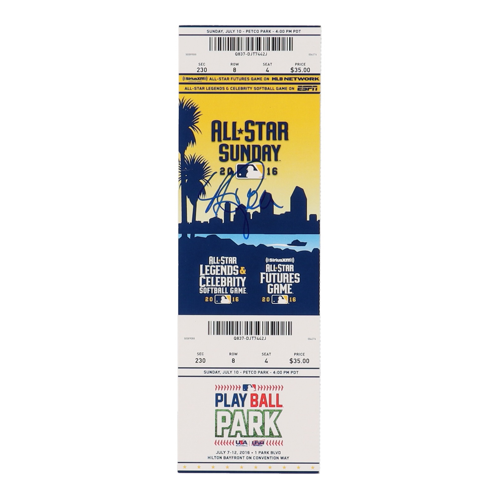 Andrew Benintendi Signed 2016 MLB All-Star Game Ticket (PSA)
