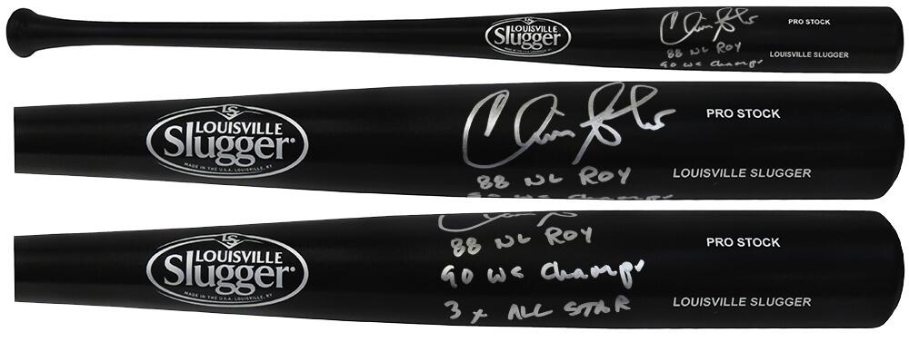 Louisville Slugger Pro Stock black baseball bat. Hand-signed and inscribed by Chris Sabo.