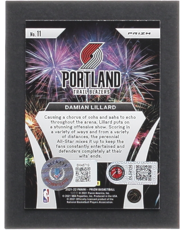 Damian Lillard Signed 2021-22 Panini Prizm Fireworks Prizms Silver #11 (Beckett)
