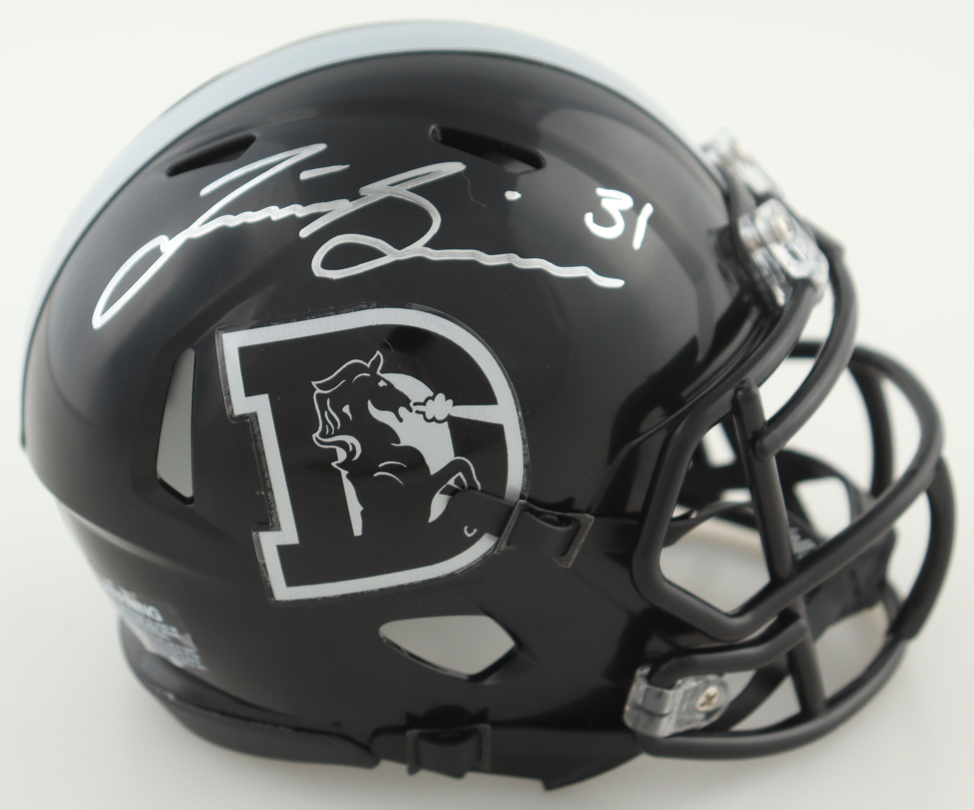 Justin Simmons Signed Broncos Throwback Speed Mini Helmet (JSA)