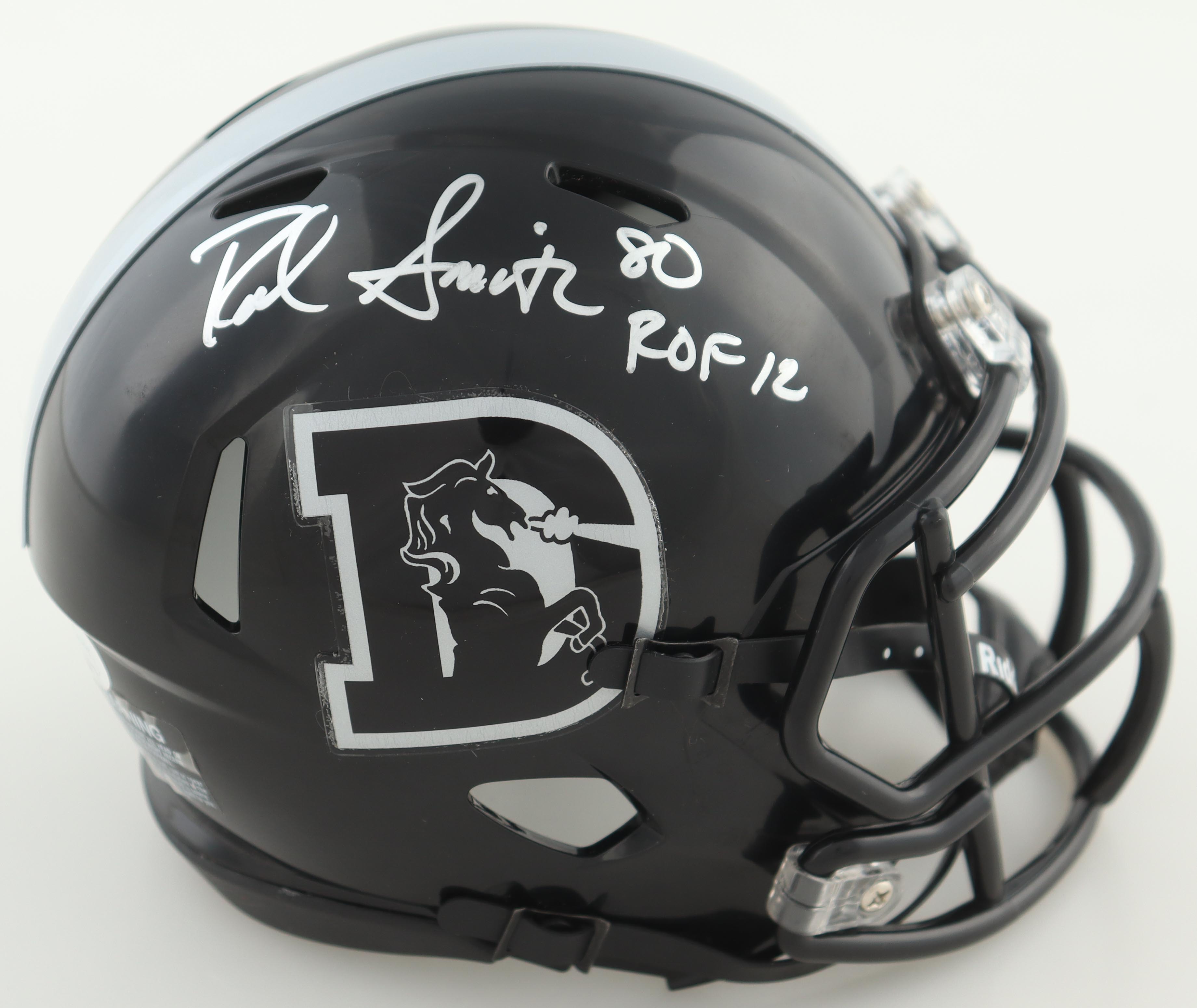 Riddell Denver Broncos Throwback mini helmet. Hand-signed and inscribed by Rod Smith.