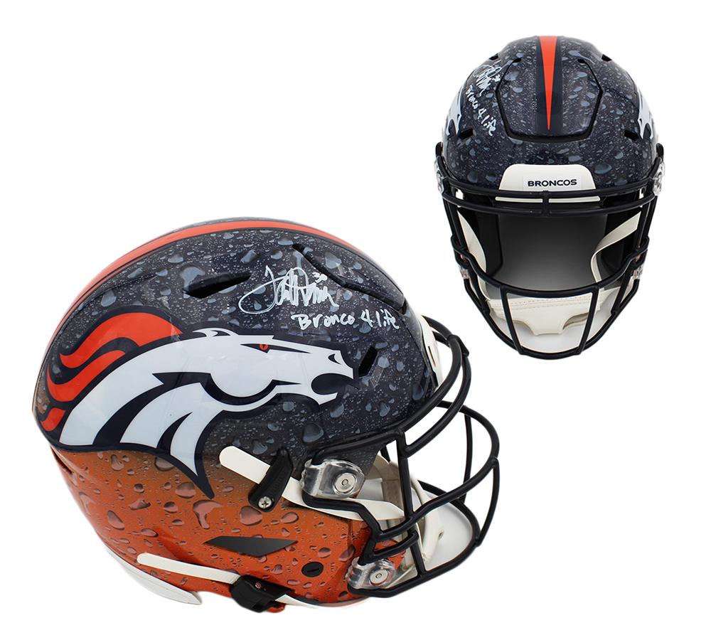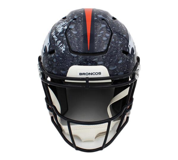 Riddell Denver Broncos full-size authentic on-field speed-flex helmet has been hand-signed and inscribed by Terrell Davis (HOF).