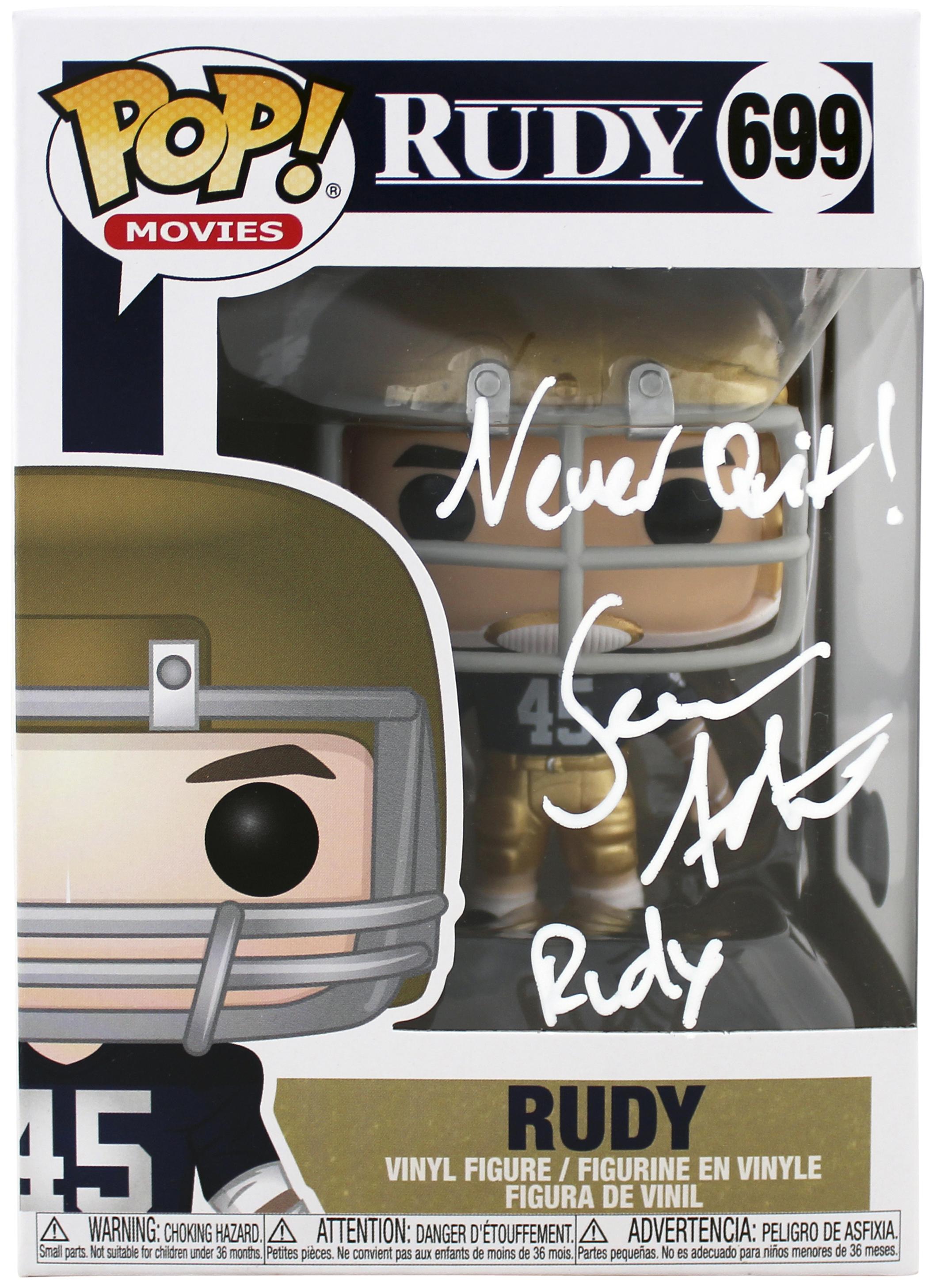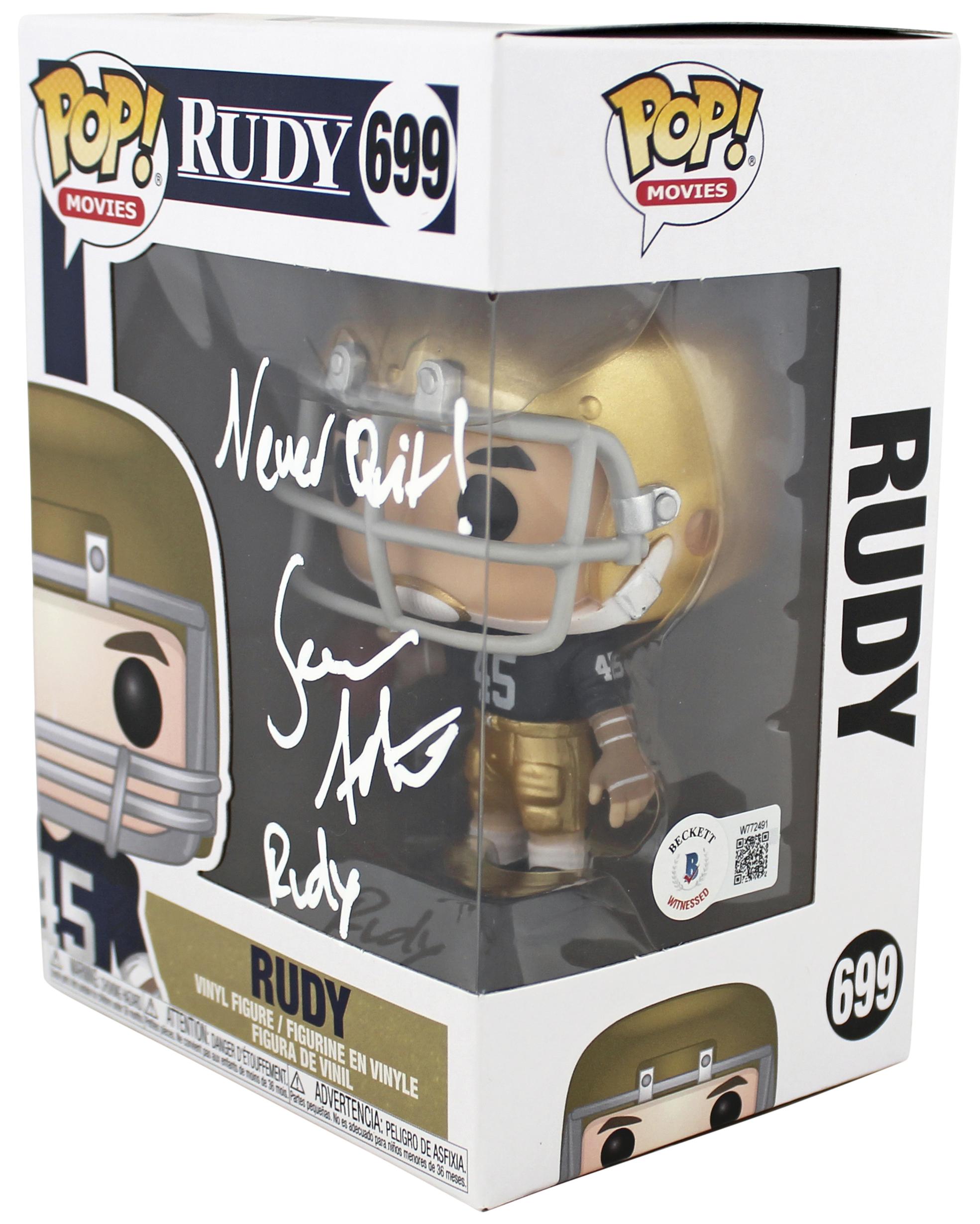 Sean Astin Signed "Rudy" #699 Rudy Funko Pop Vinyl Figure Inscribed "Never Quit" & "Rudy" (Beckett)