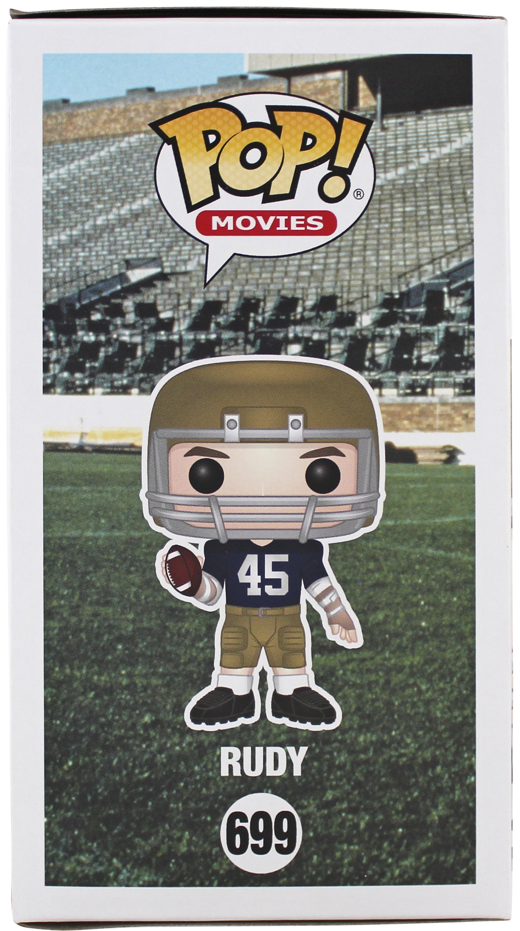 Vinyl figure measures approximately 4" tall and has been hand-signed and inscribed on the packaging by Sean Astin (Rudy Ruettiger).