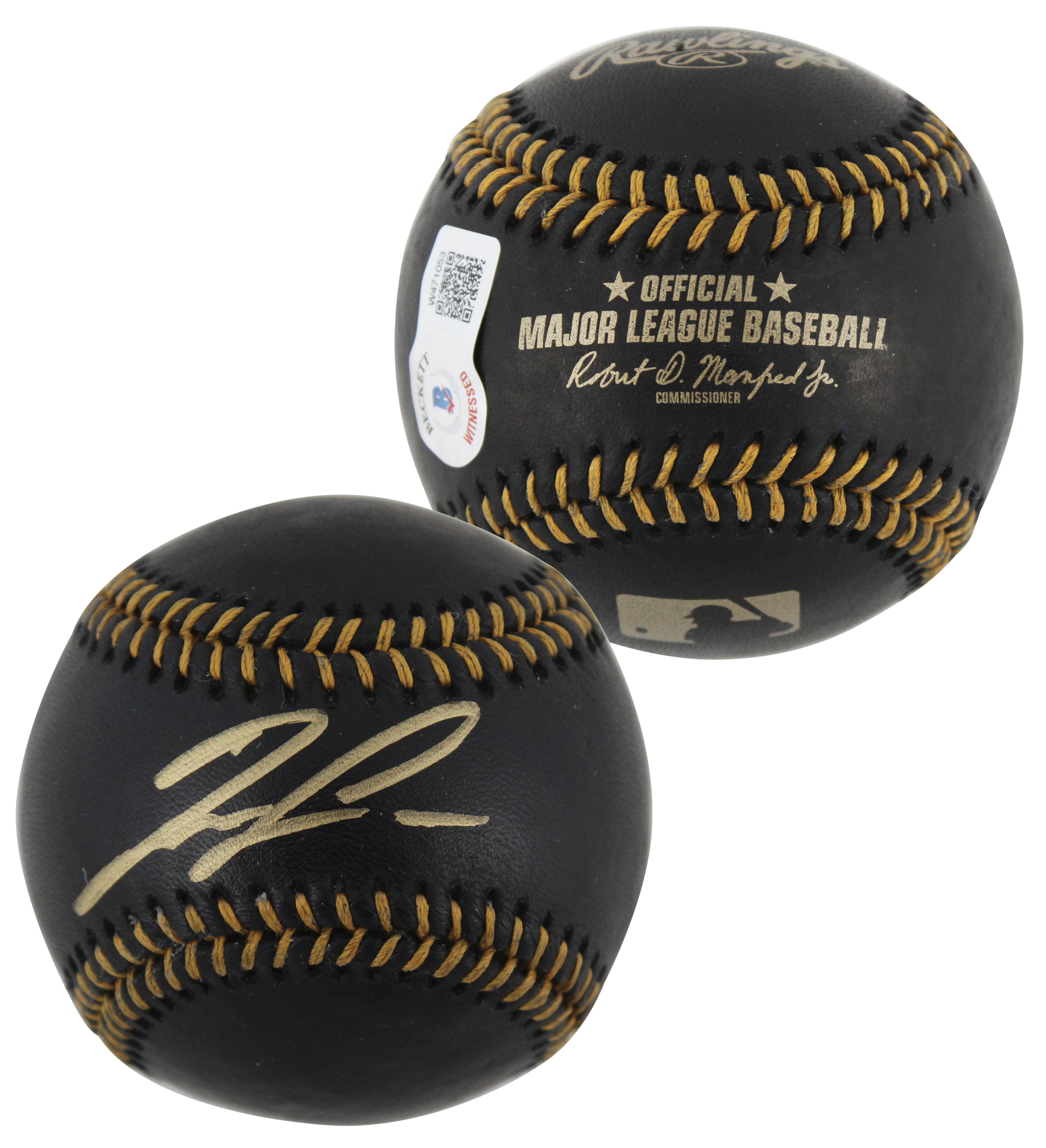 Rawlings Official Major League Black Leather baseball. Hand-signed by Ronald Acuna Jr. (Atlanta Braves).
