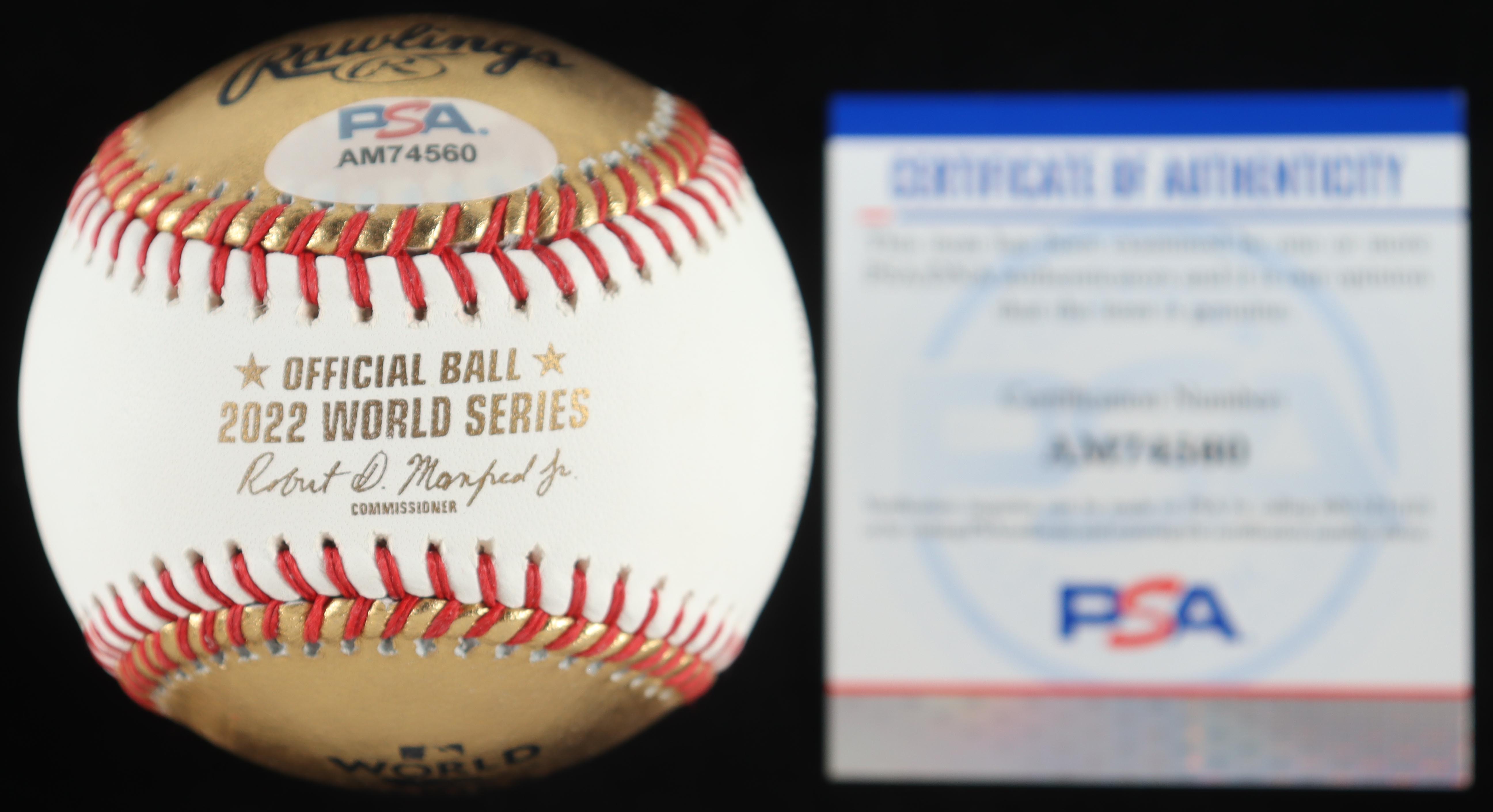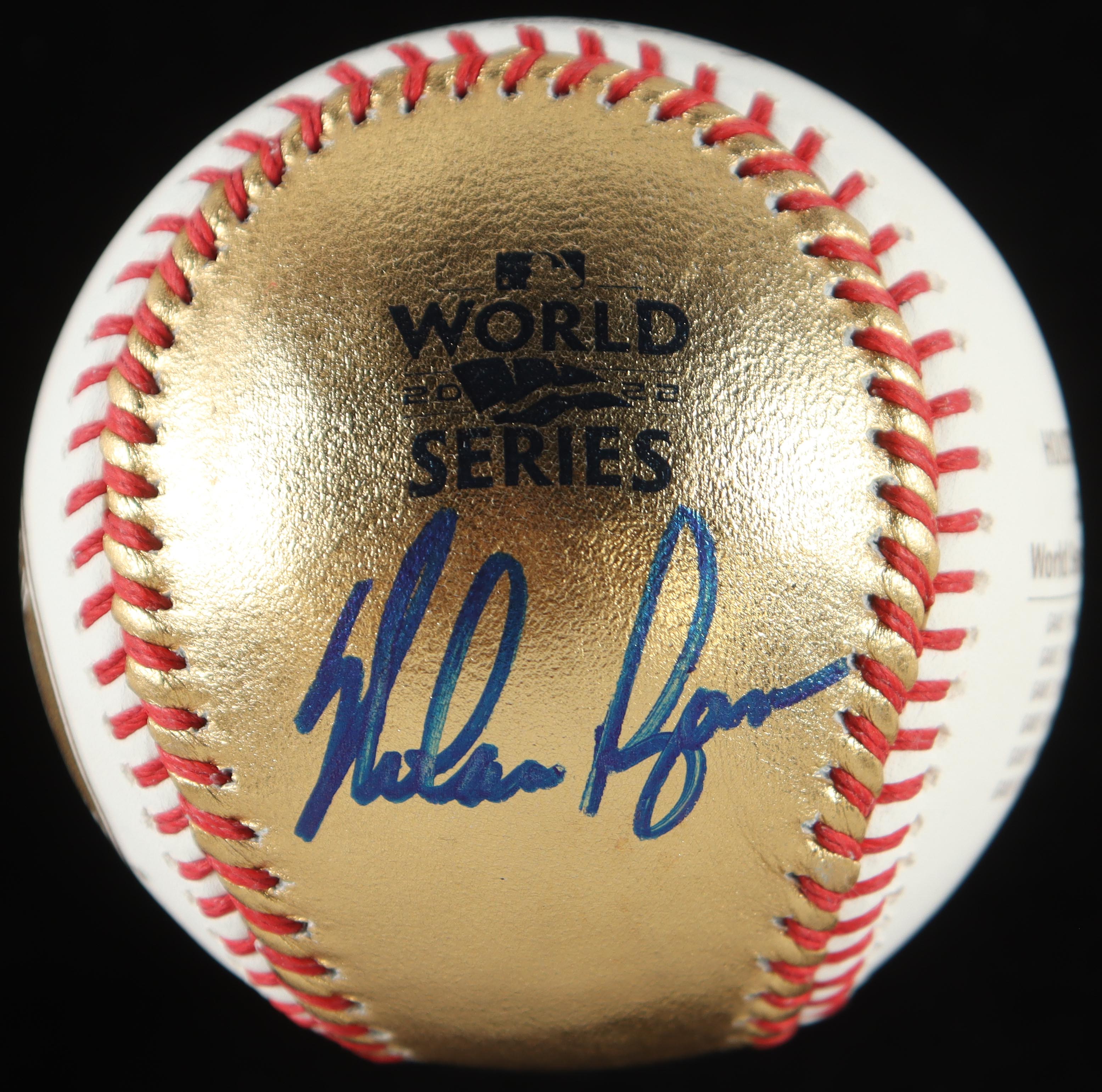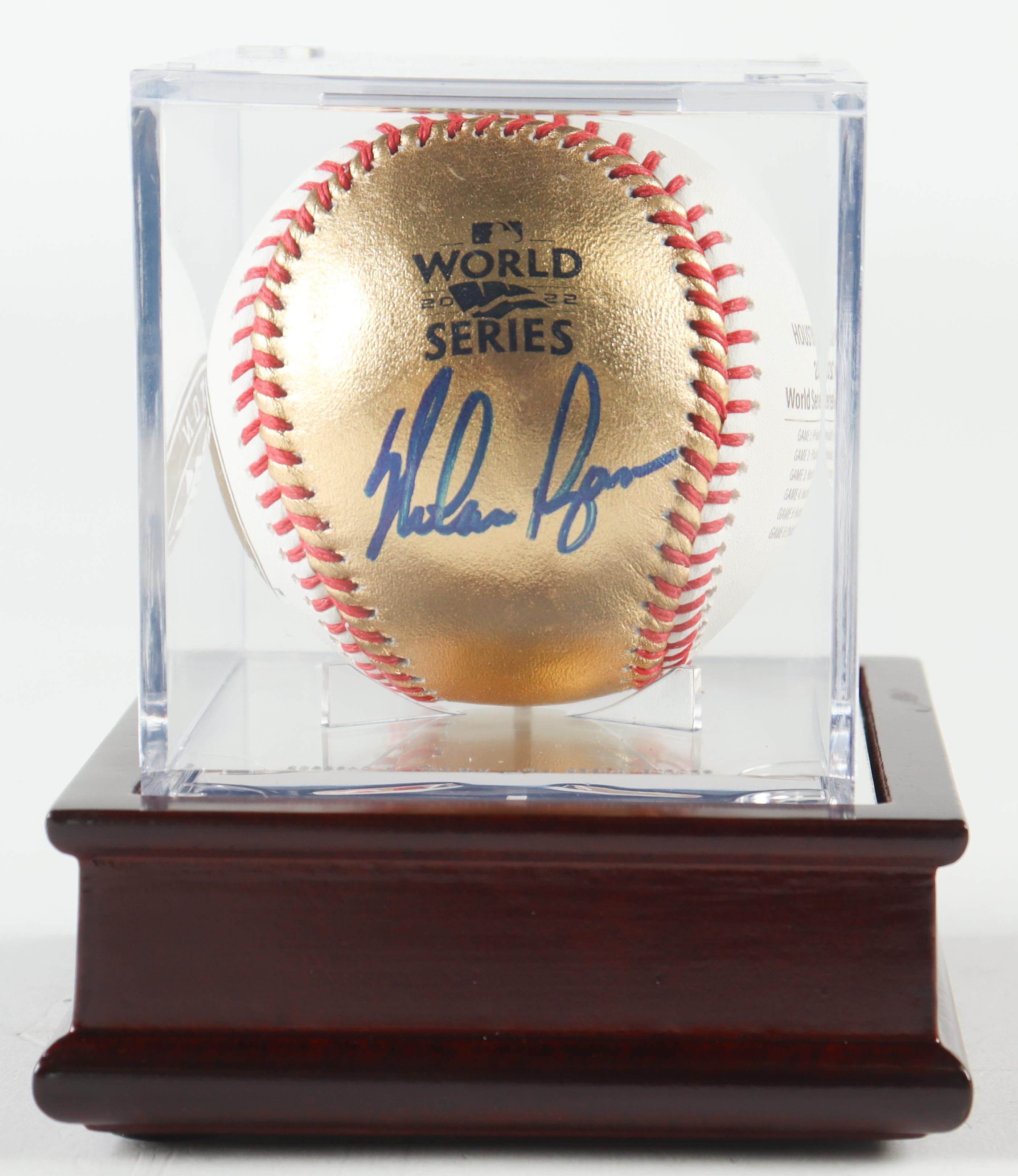 Nolan Ryan Signed 2022 Houston World Series Logo Baseball With Wood Display Case (PSA)