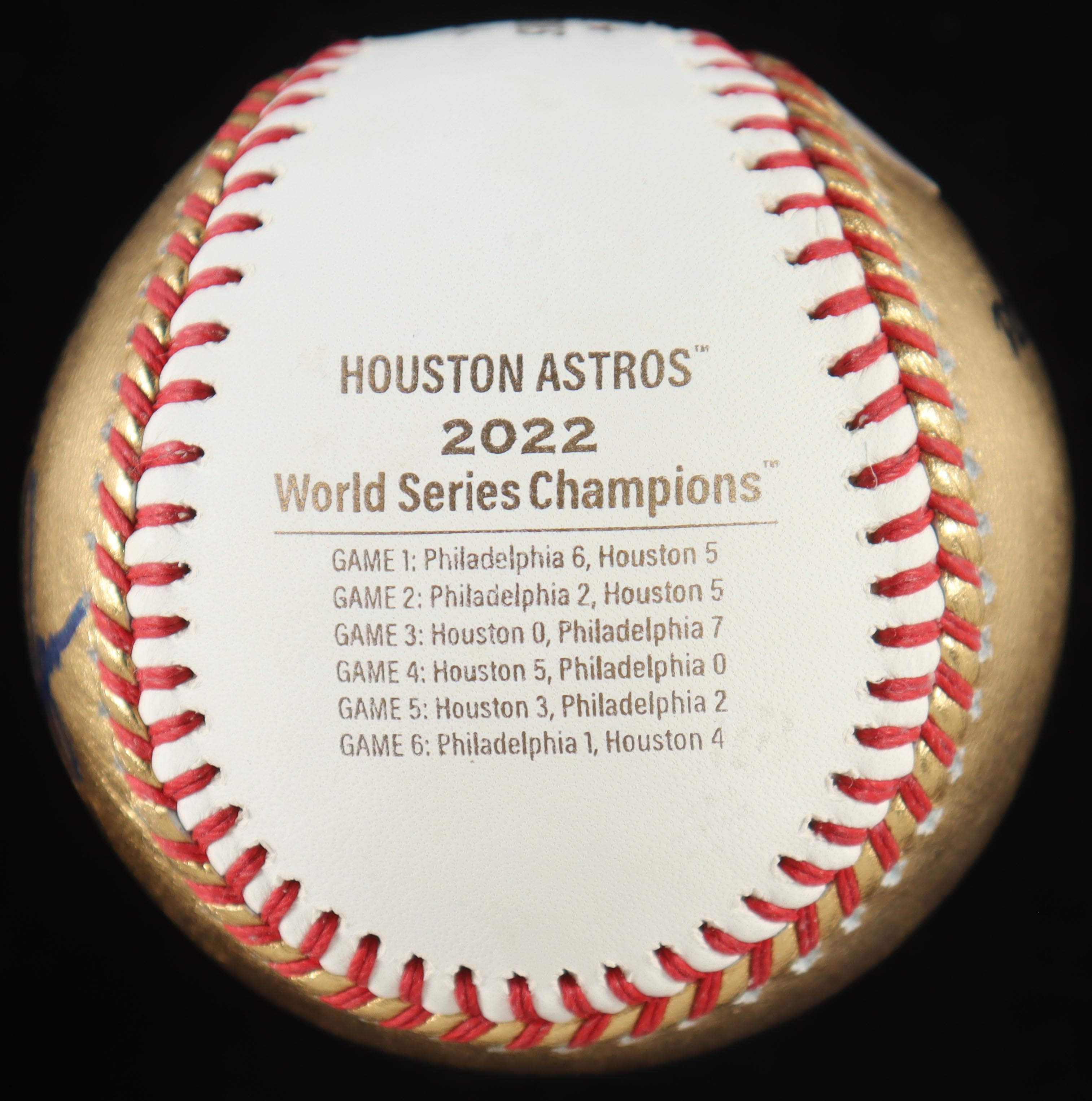 Rawlings Official 2022 Houston World Series Logo baseball. Hand-signed by Nolan Ryan (Houston Astros, HOF). Includes display case as shown.