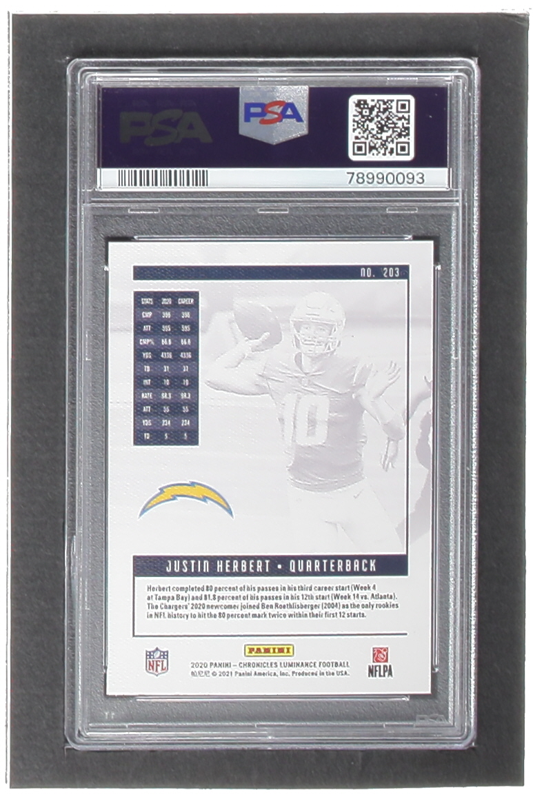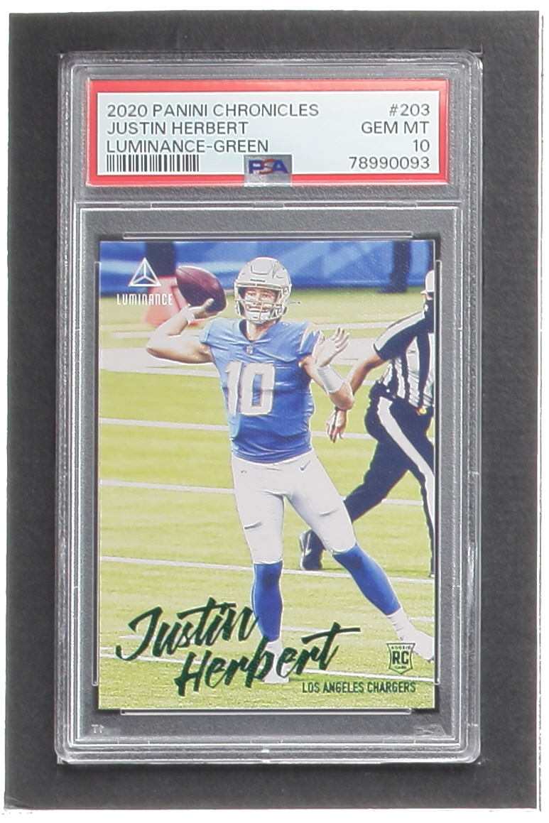 Justin Herbert 2020 Panini Luminance Green #203 Chronicles RC (PSA 10)
