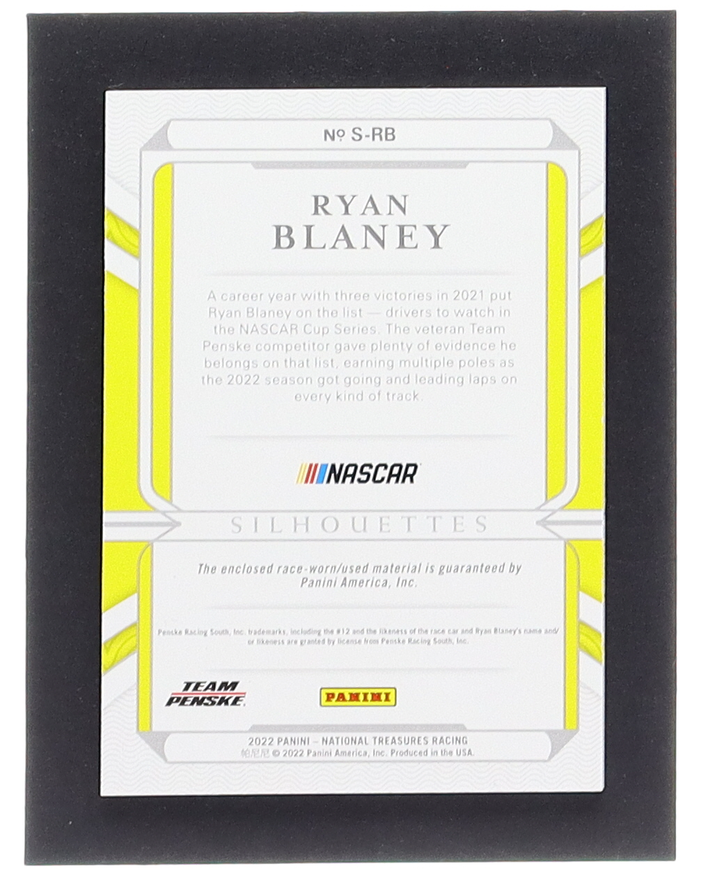 Ryan Blaney 2022 Panini National Treasures Silhouettes Holo Platinum Blue #13 #1/1