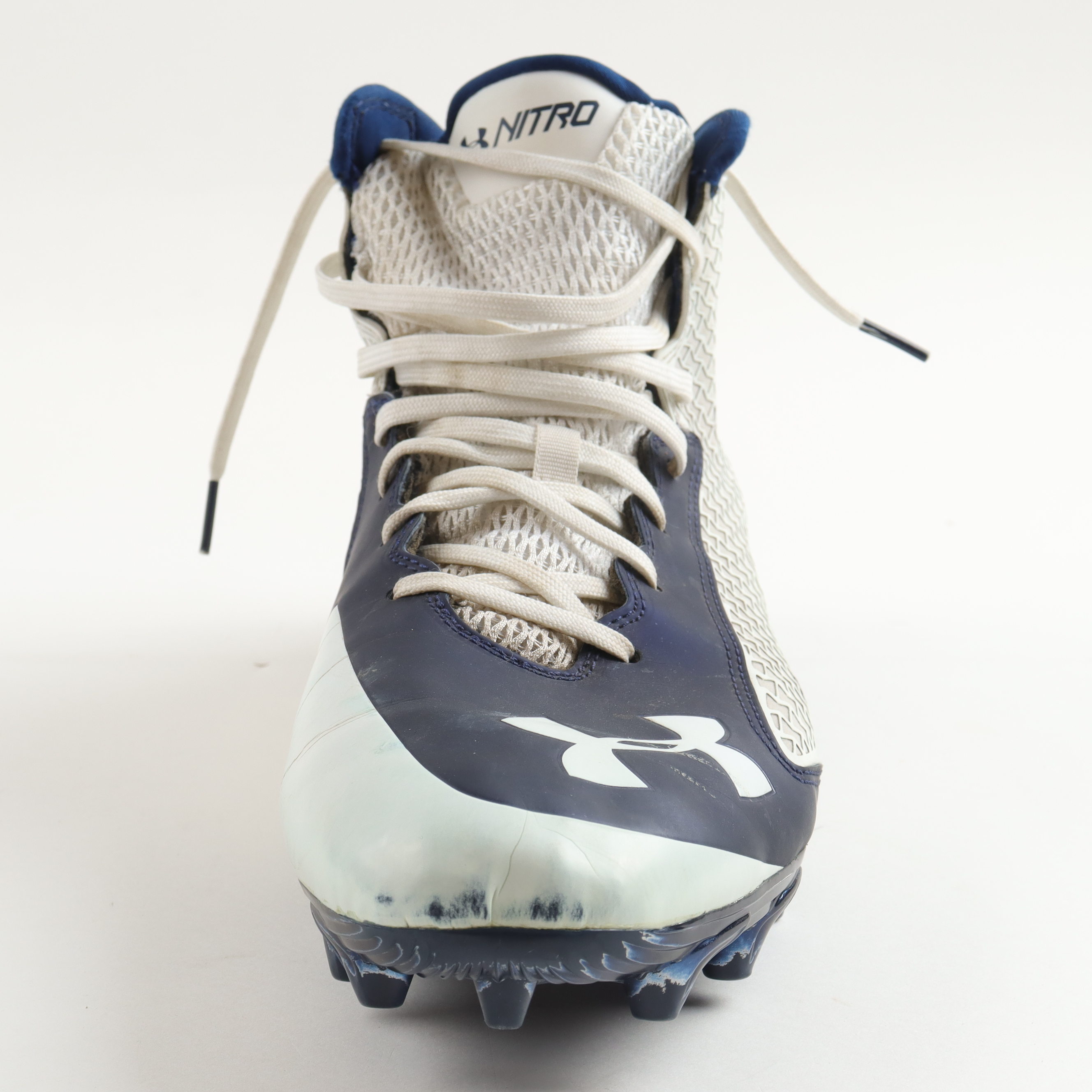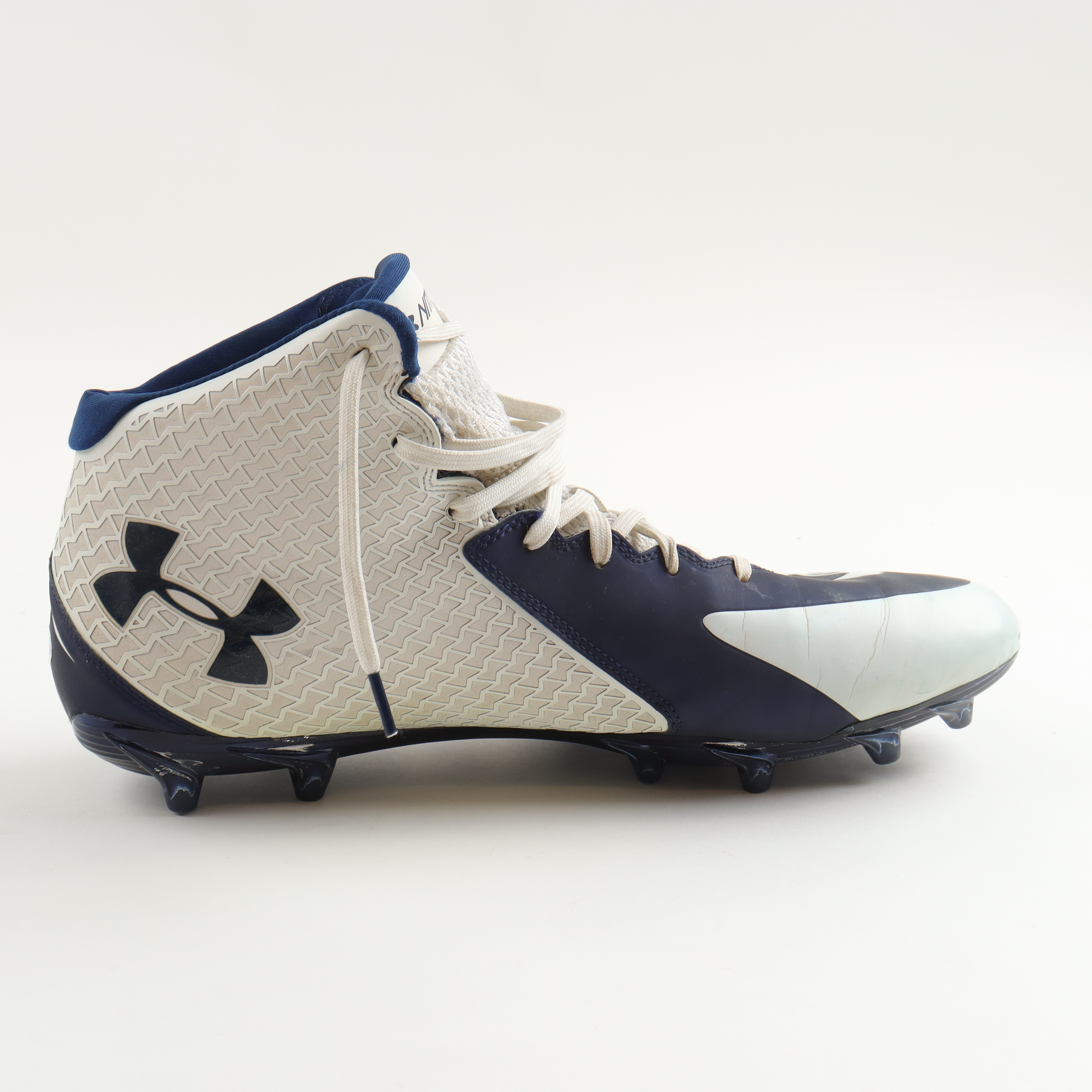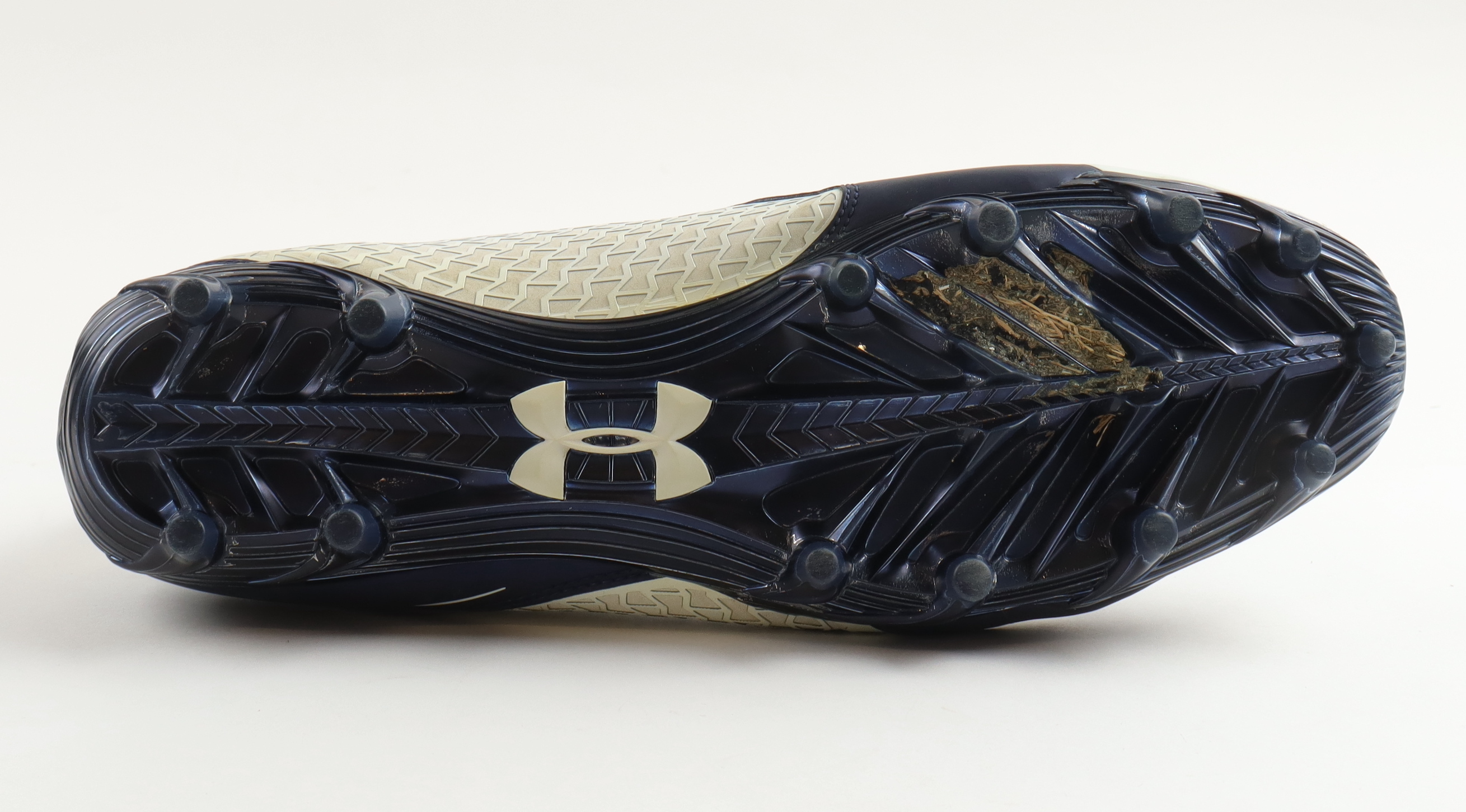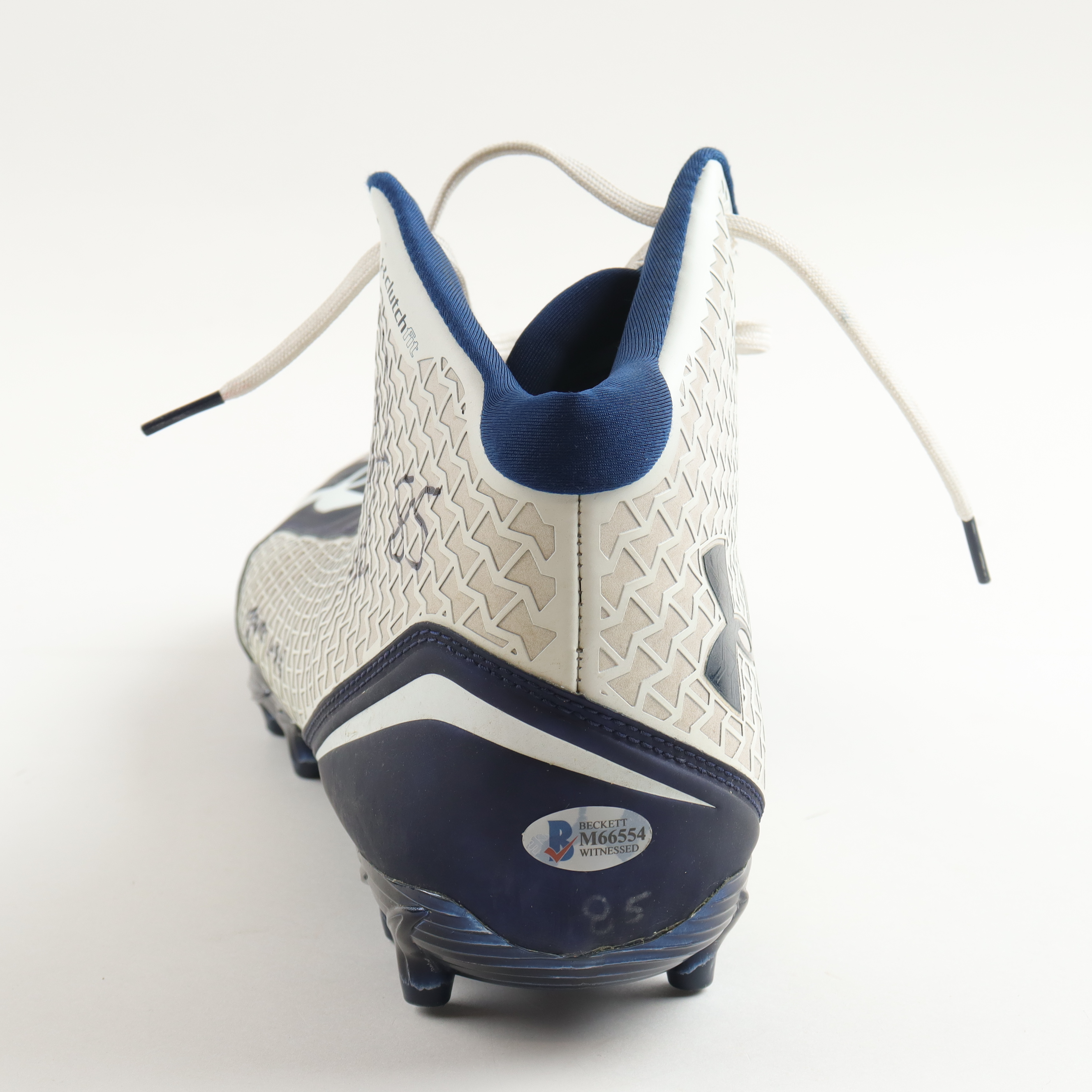 Under Armour football cleat, size (15E). Hand-signed and inscribed by Antonio Gates (Los Angeles Chargers). Please note, the cleat has been game-used by and shows signs of wear.