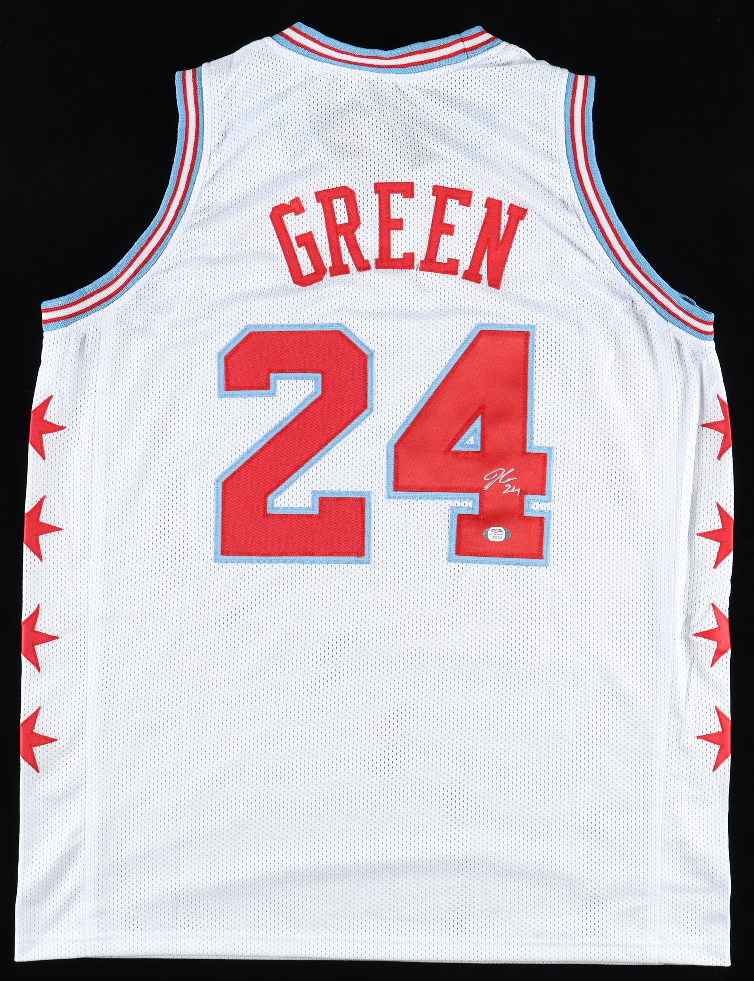 Custom jersey. Everything is sewn on, size XL. Hand-signed by Javonte Green.
