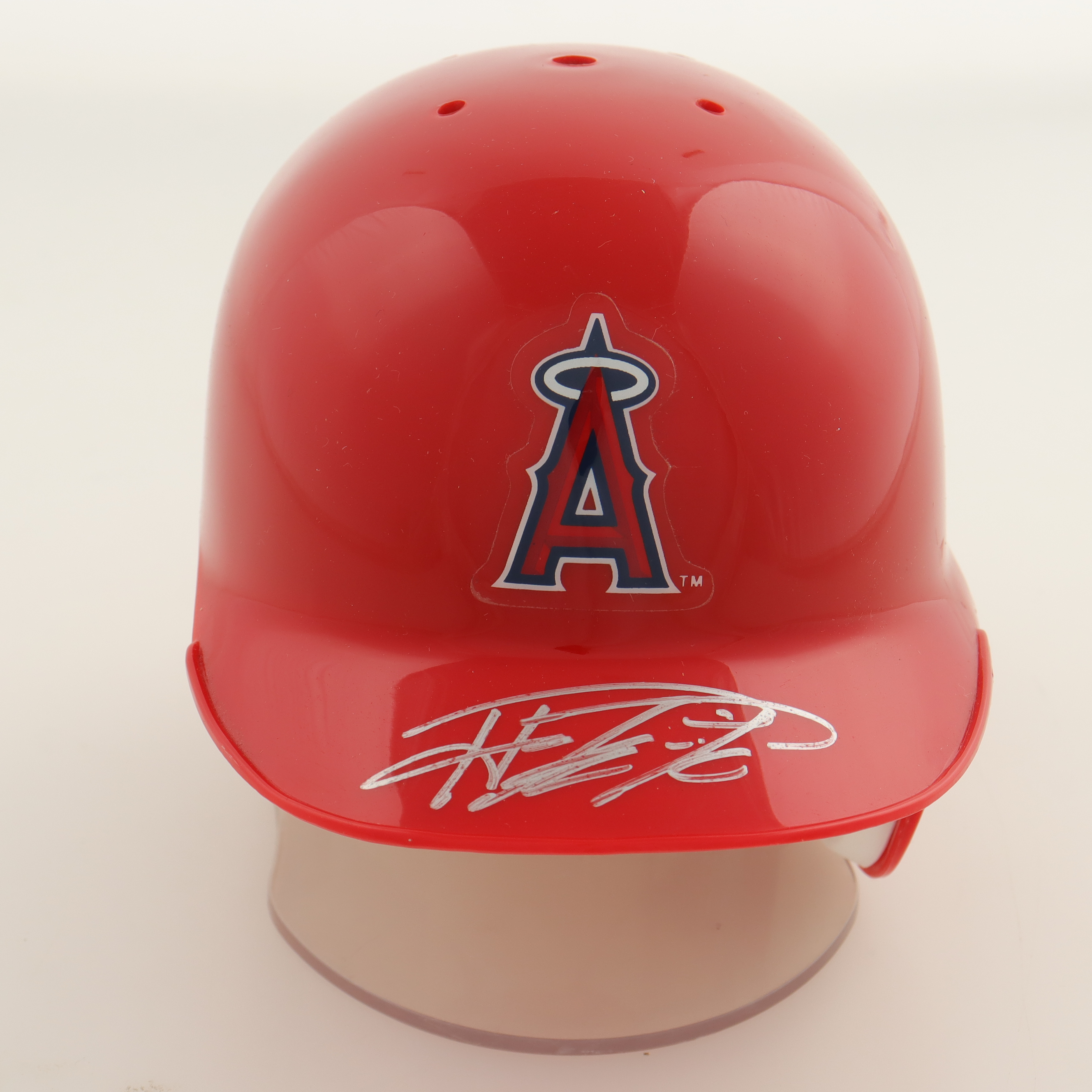 Rawlings Anaheim Angels mini batting helmet. Hand-signed by Howie Kendrick. Please note the stand is not included.