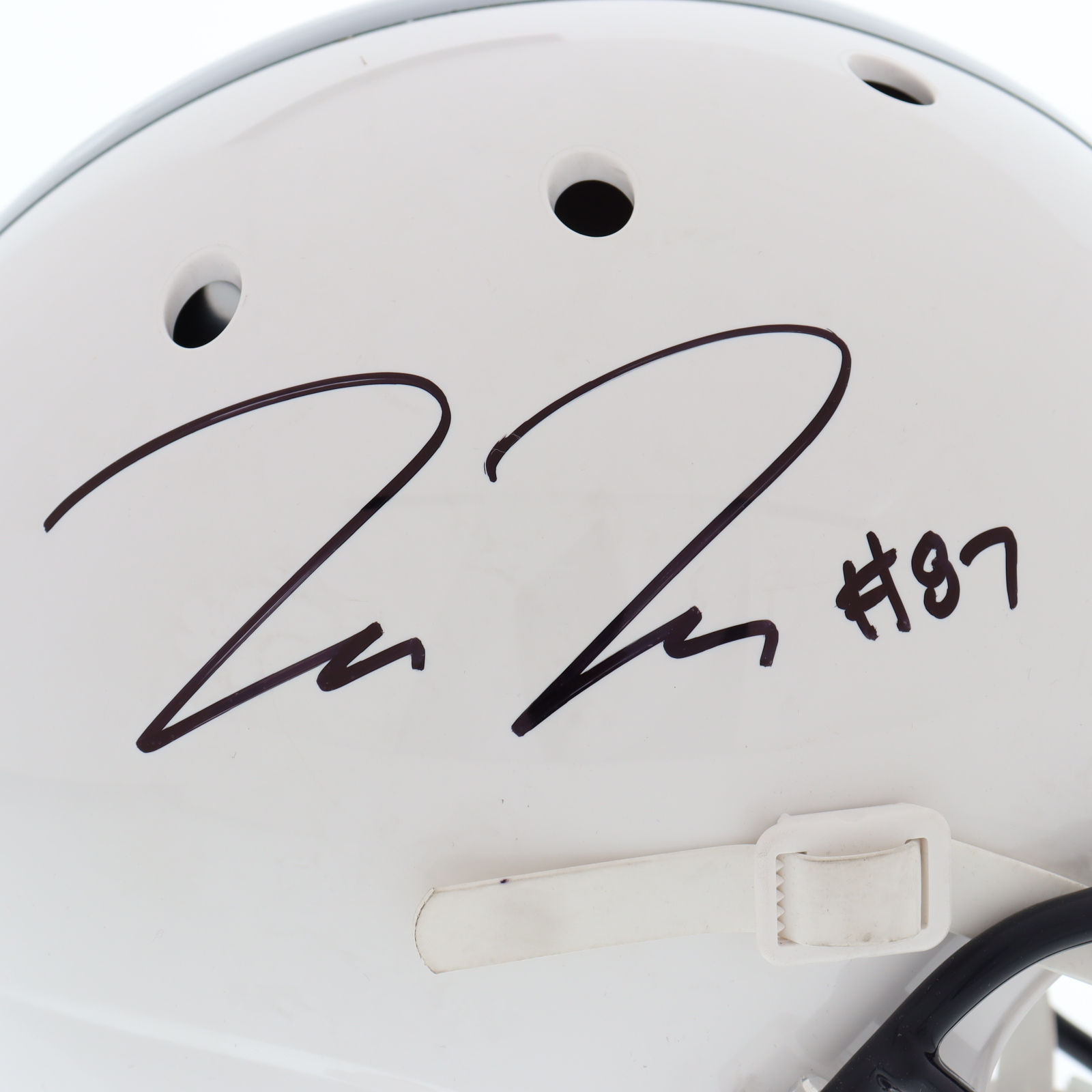 Schutt Penn State Nittany Lions full-size replica helmet. Hand-signed by Pat Freiermuth.