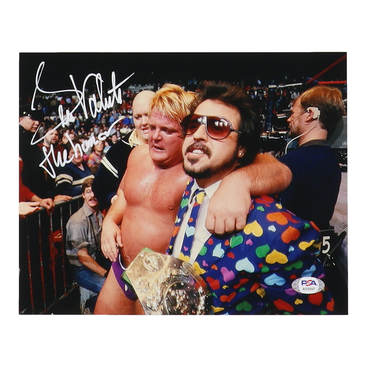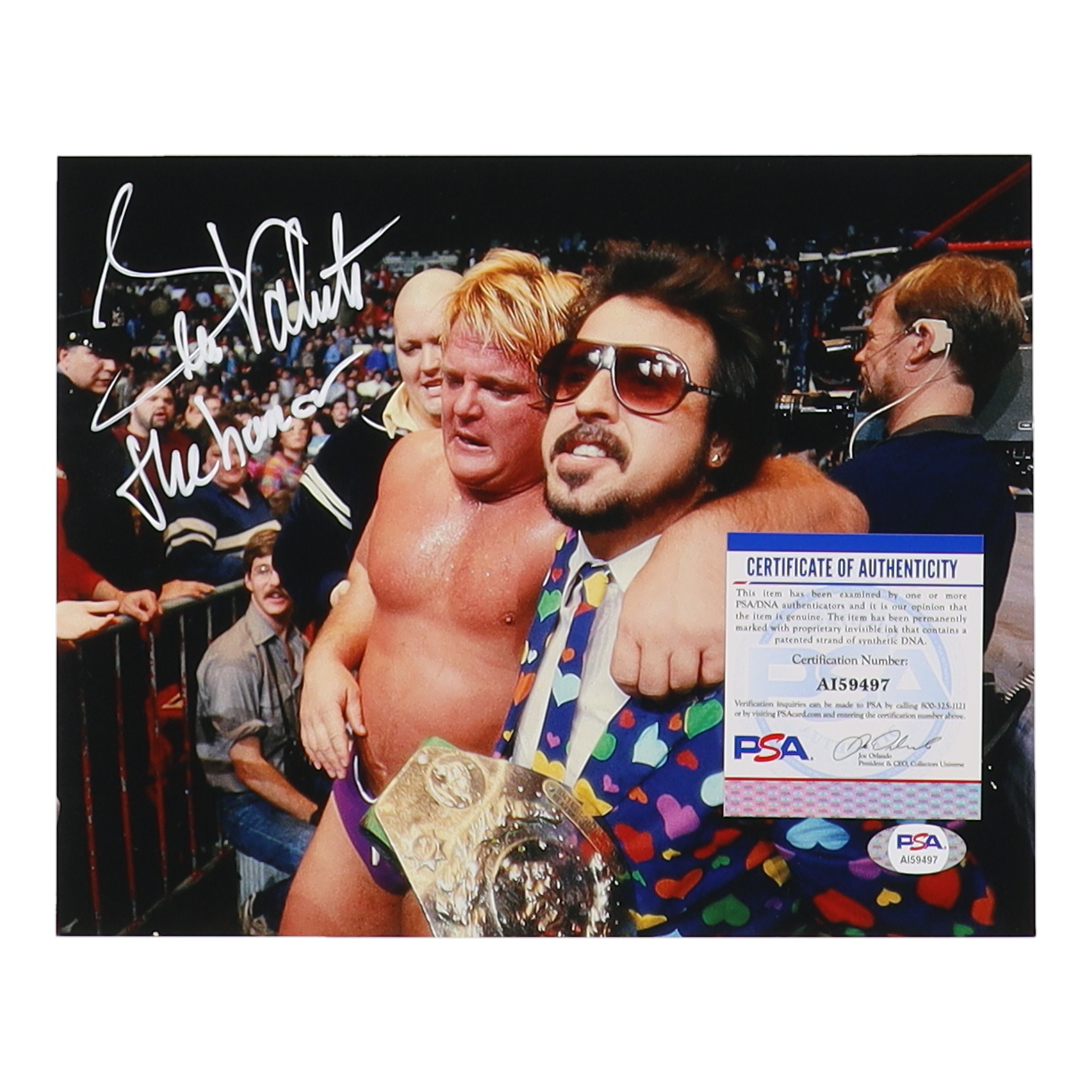 Photo measures 8" x 10" in size and has been hand-signed by Greg Valentine (HOF).