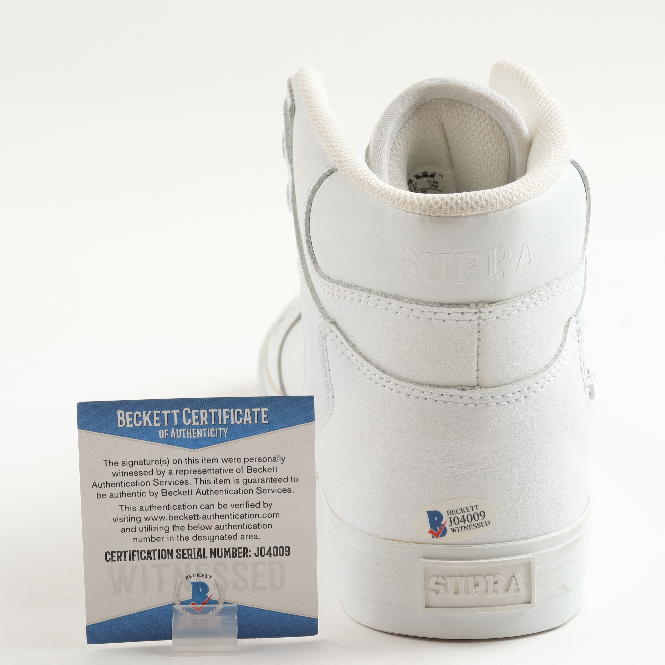 Supra basketball shoe, size 11. Hand-signed and inscribed by Dominique Wilkins (Atlanta Hawks, HOF).