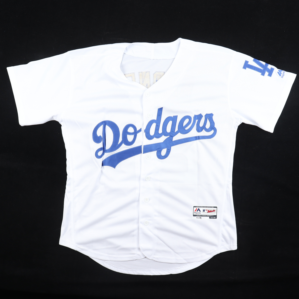 Custom jersey with everything sewn on, size XL. Hand-signed and inscribed by Austin Barnes.