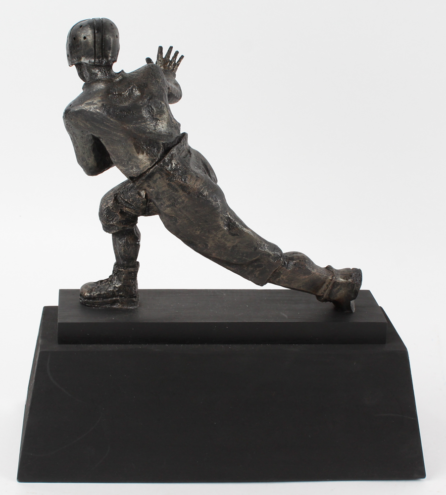 Heisman Football Trophy measures 13.5" in height and has been hand-signed in gold felt tip pen by Paul Hornung, Ricky Williams, Mike Rosier, Steve Owens, Ron Dayne, Billy Sims, George Rogers, Rashaan Salaam, Charlie Ward, Jason White, and Eric Crouch.