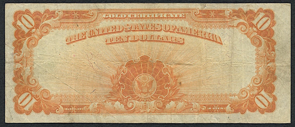 1922 $10 Ten Dollar U.S. Gold Certificate Currency Note (Fr. 1173 Large Note)