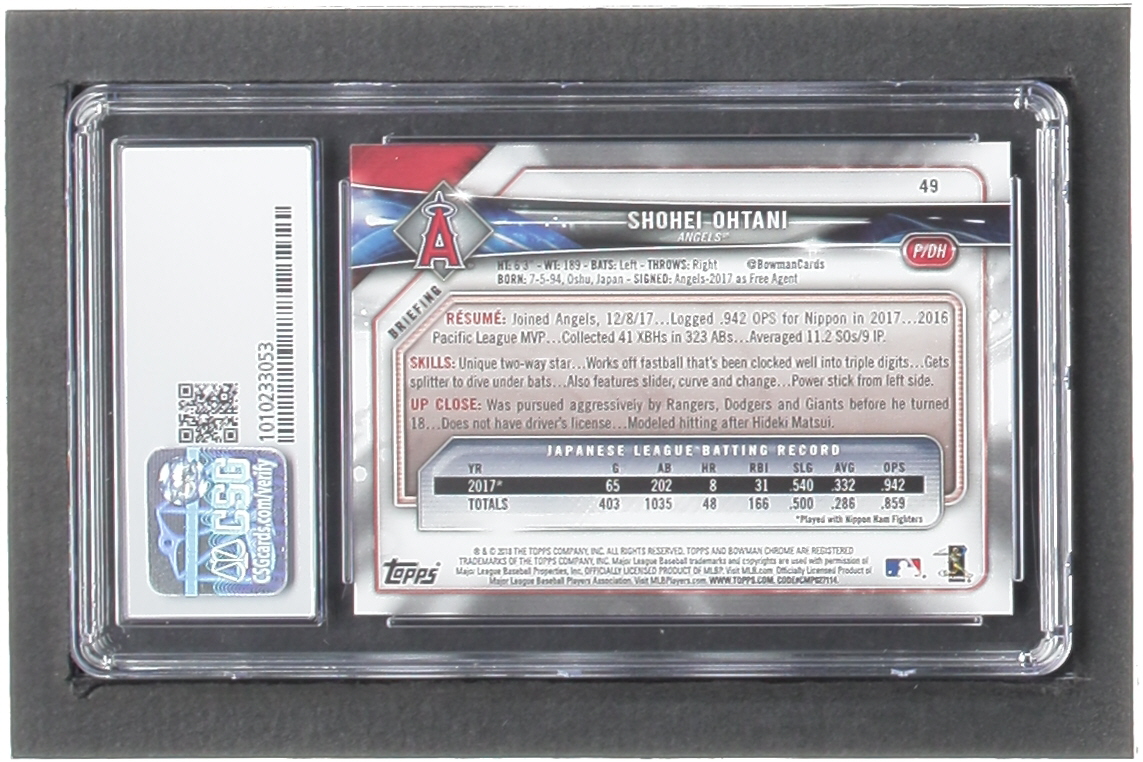Shohei Ohtani 2018 Bowman #49 RC (CSG 9)