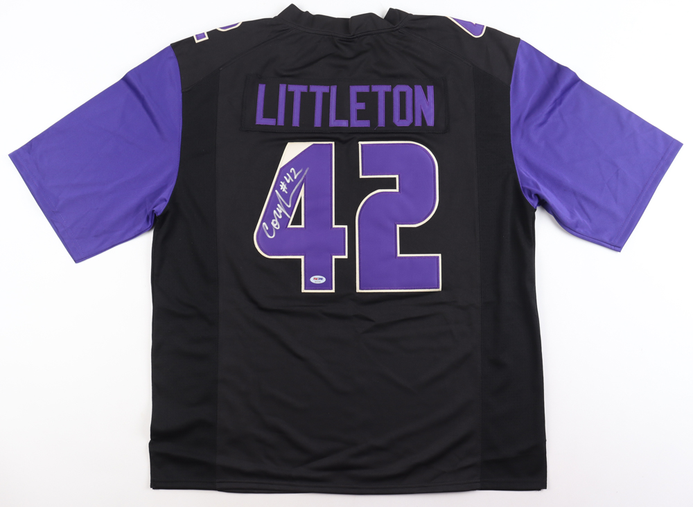 Custom jersey with everything sewn on, size XL. Hand-signed by Cory Littleton.