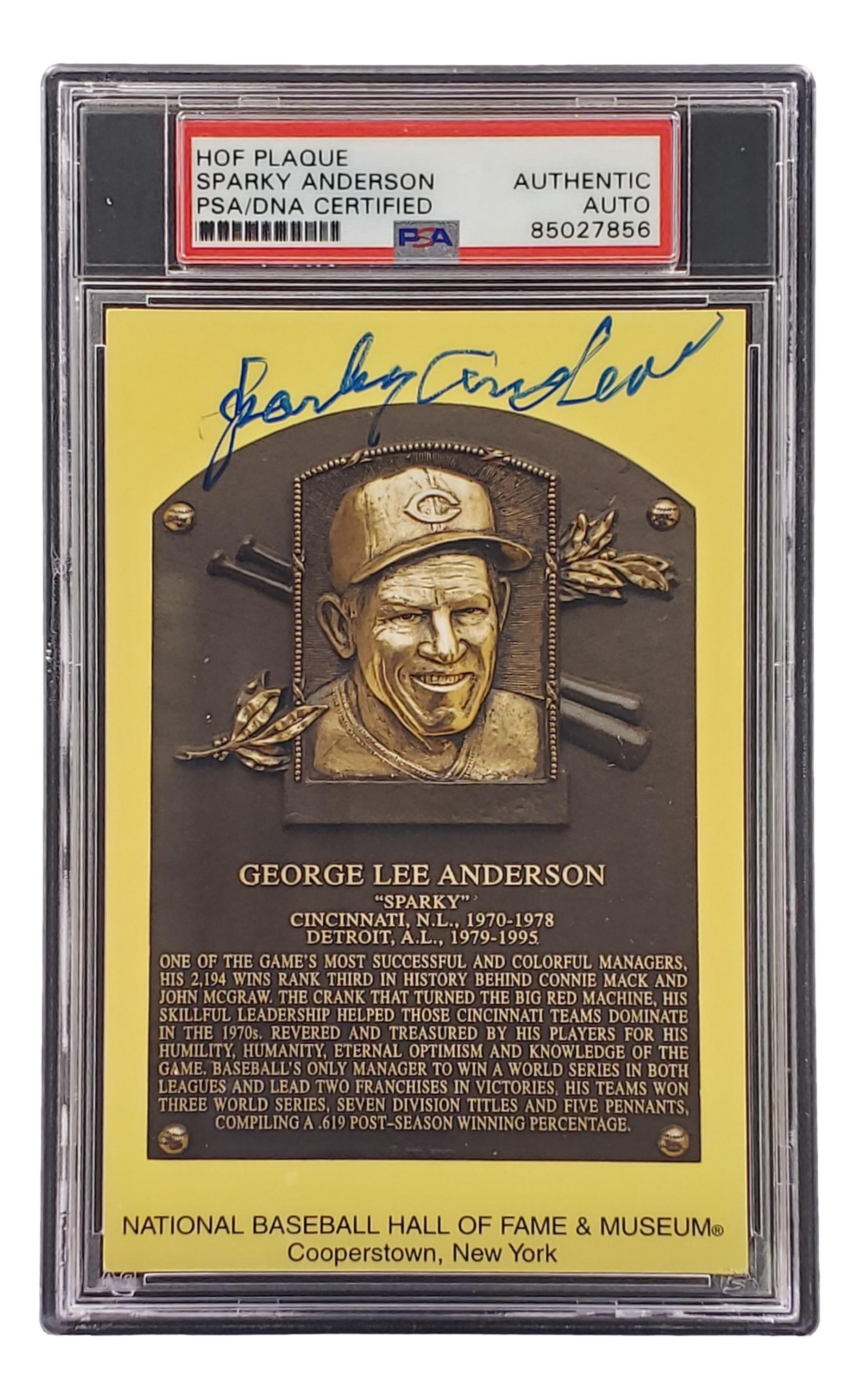 Sparky Anderson Signed Hall of Fame Plaque Postcard (PSA)