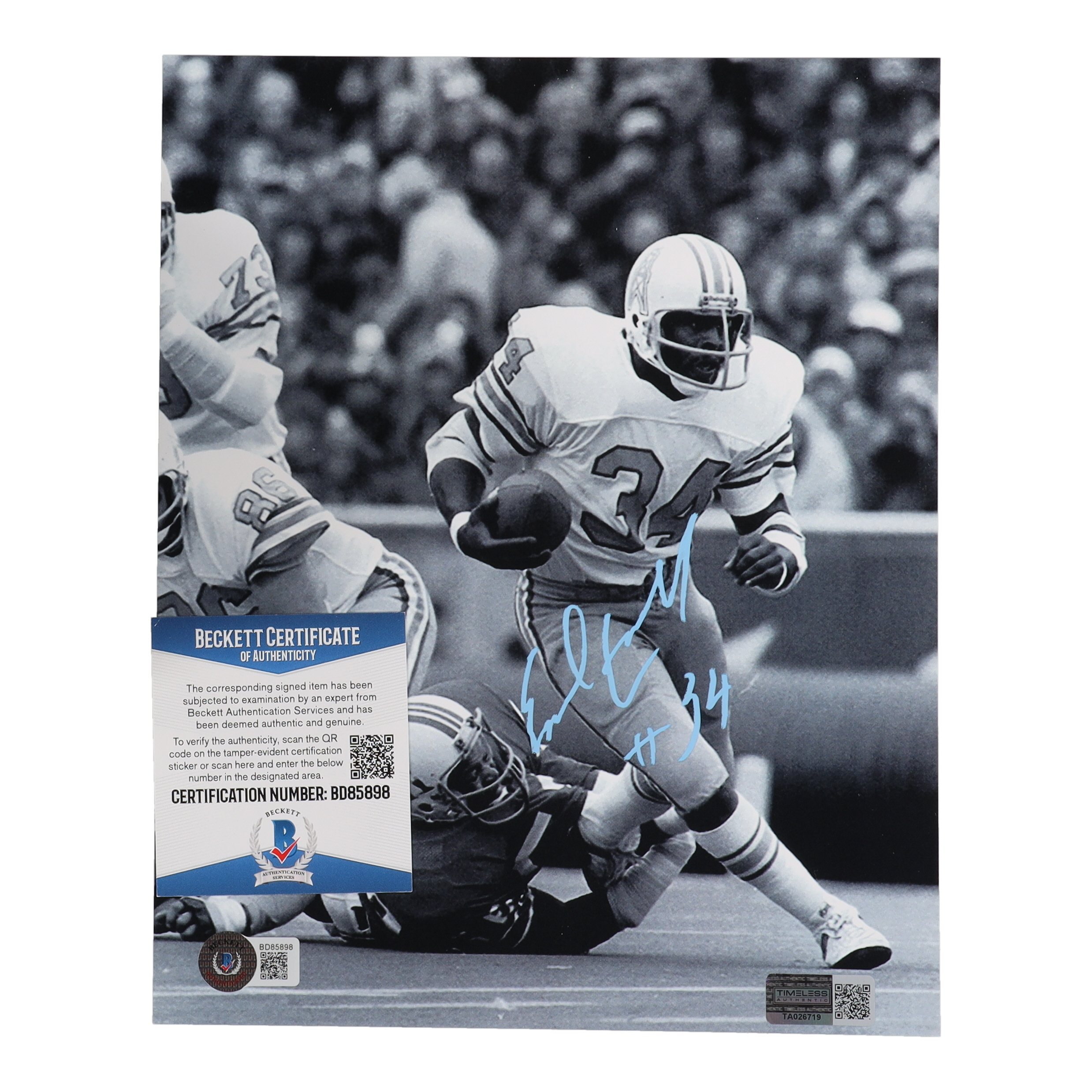 The autograph includes an official Beckett Authentication Services hologram and matching COA, as well as an official Timeless Authentic hologram for authenticity purposes.