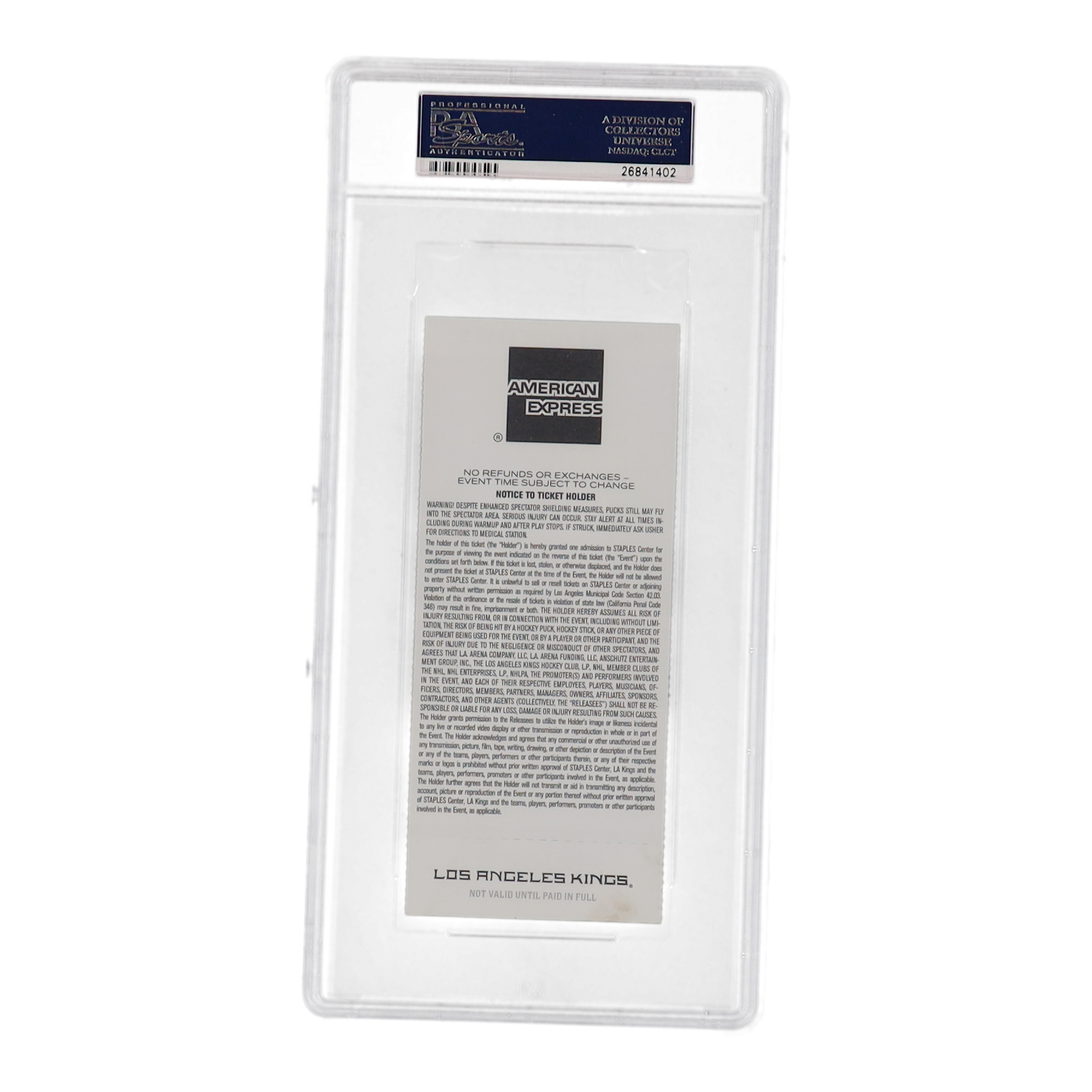 Ticket has been hand-signed by Jonathan Quick (Los Angeles Kings). Please refer to photos for condition of the ticket.