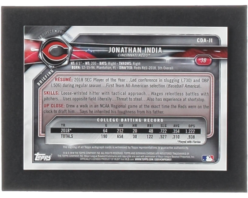 Jonathan India 2018 Bowman Chrome Draft Autographs #CDAJI
