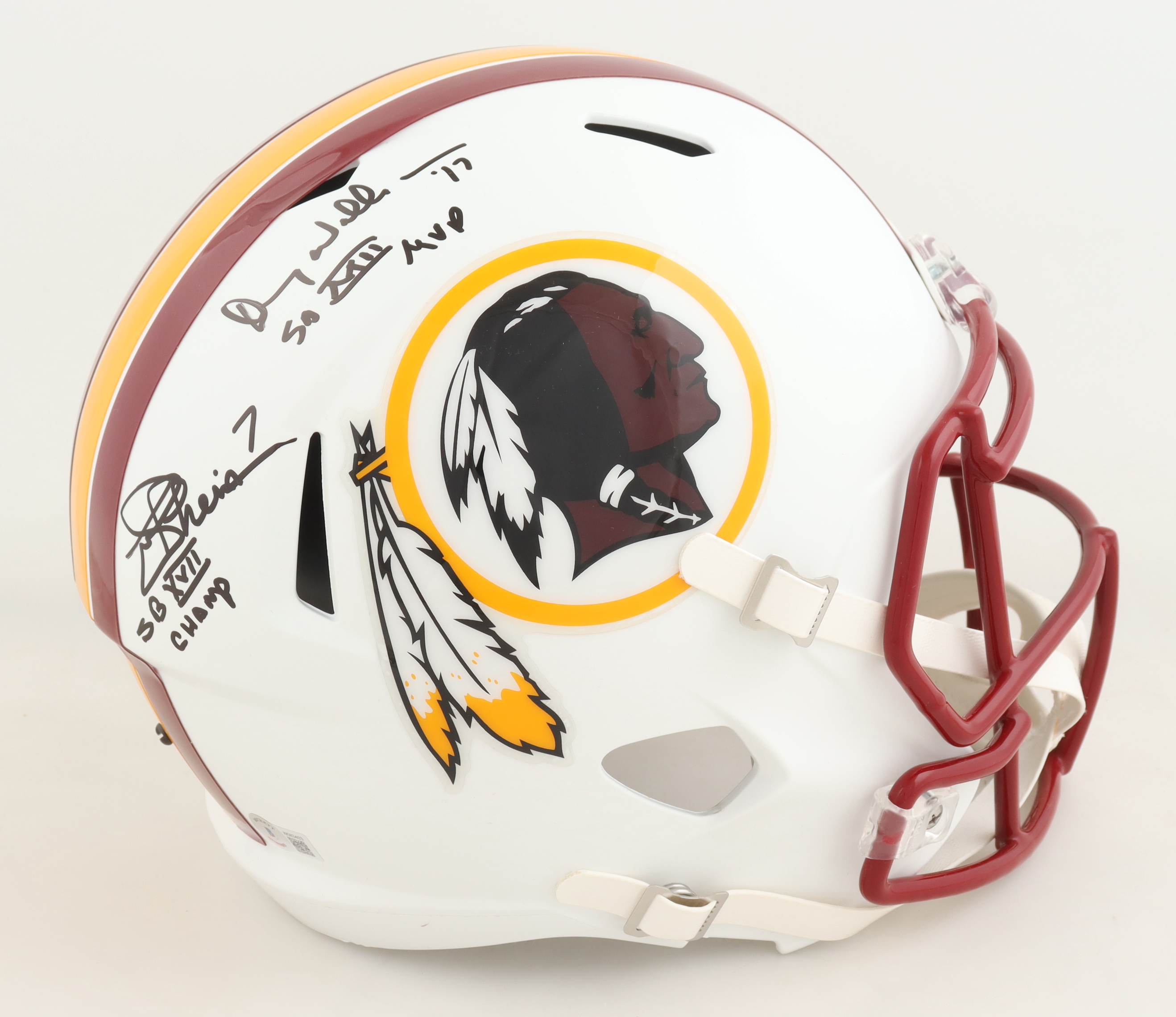 Joe Theisman & Doug Williams Signed Redskins Full-Size Matte White Alternate Speed Helmet Inscribed "SB XVII Champ" & "SB XVII MVP" (Beckett)