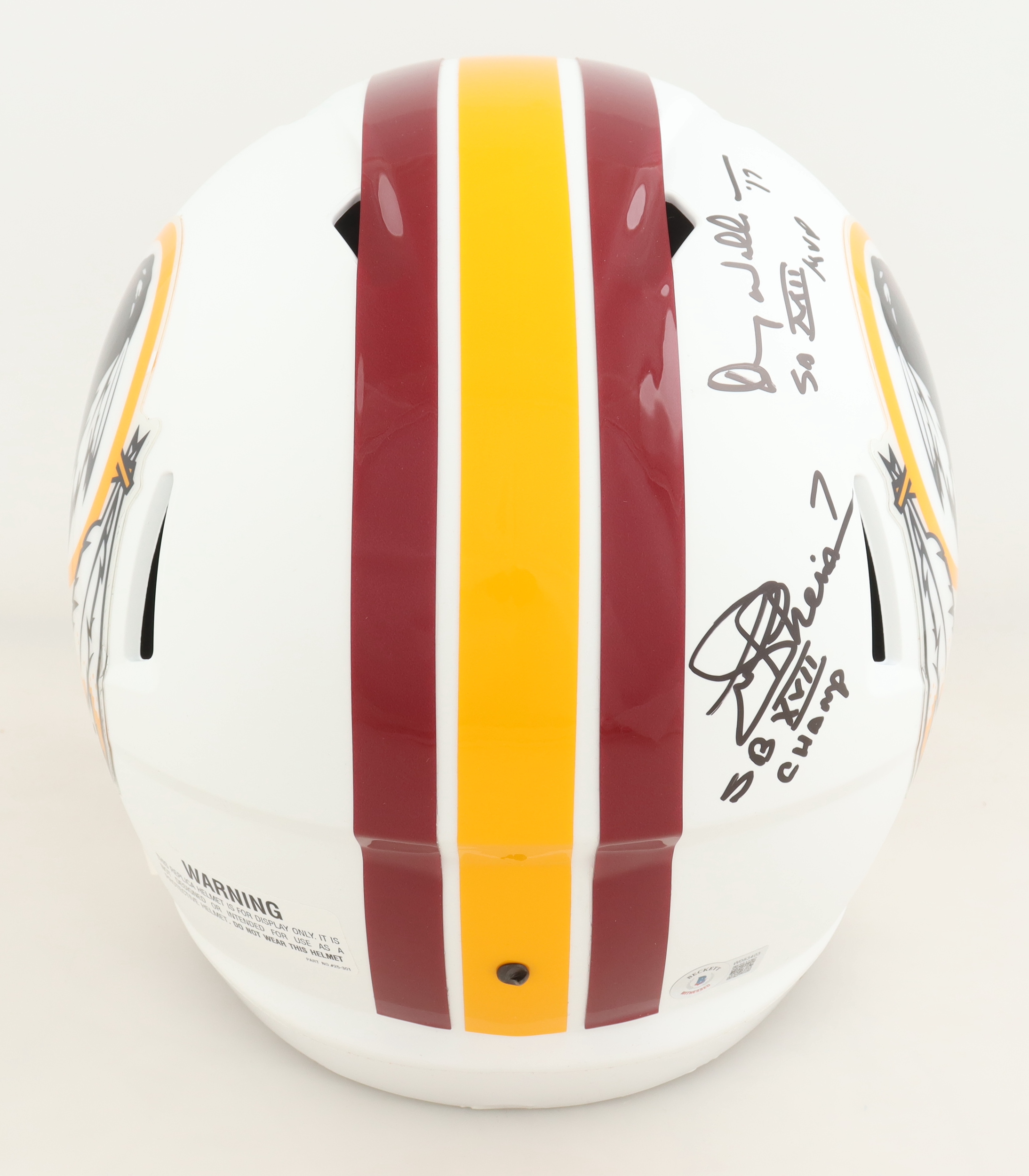 Riddell Washington Redskins full-size replica Matte White Alternate Speed helmet. Hand-signed and inscribed by Joe Theisman and Doug Williams.